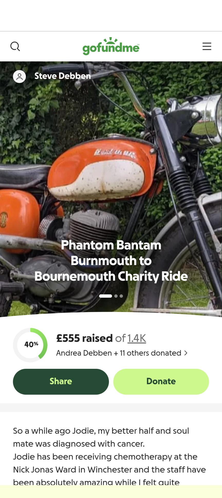 Jodie has been receiving chemotherapy at the Nick Jonas Ward in Winchester and the staff have been absolutely amazing while I felt quite useless so I've decided I want to raise some money for the ward that fight cancer and support those facing cancer every day.