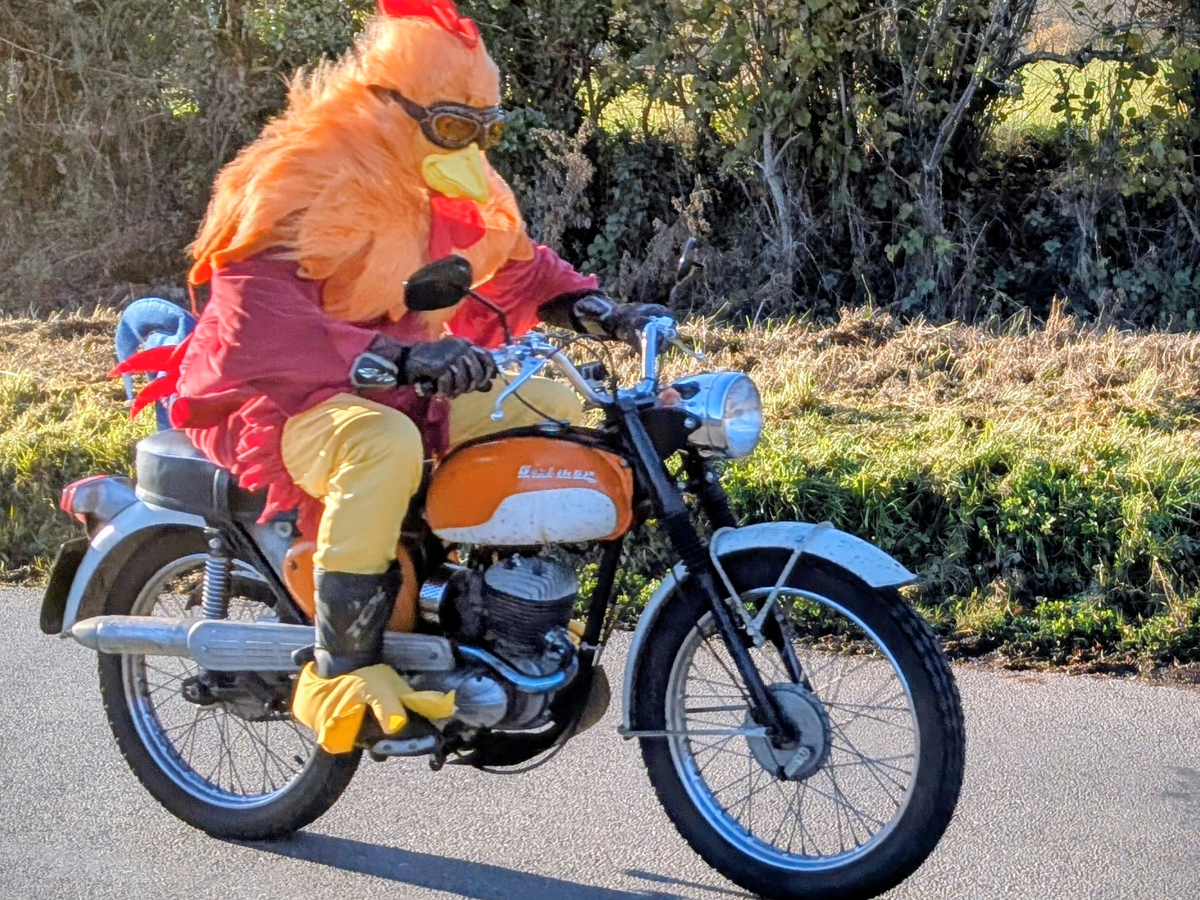 The ride will take about 4 days if I and the trusty 175 bantam can average 200 miles a day along the back roads as I can't use motorways.