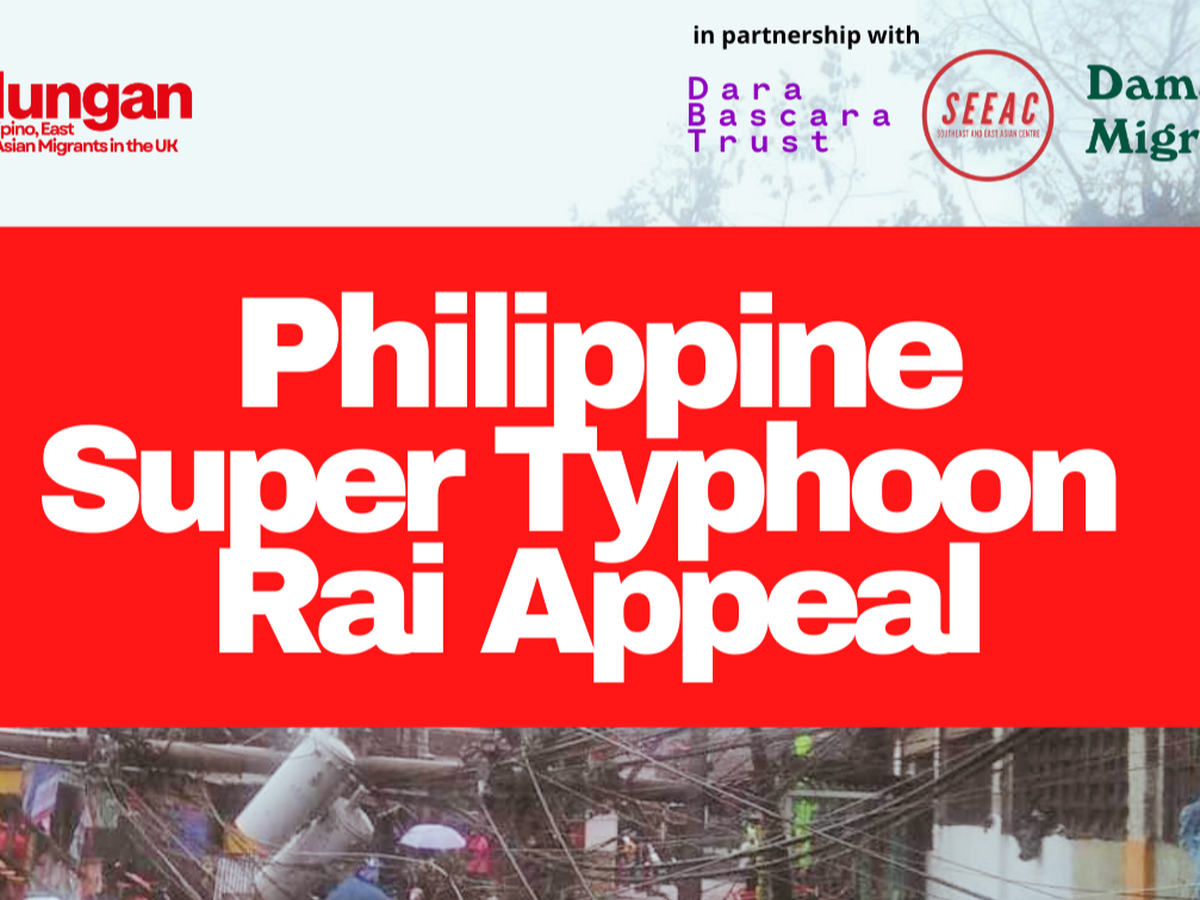 In partnership with Dara Bascara Trust and Southeast and East Asian Center (SEEAC), we are fundraising for the typhoon survivors in the Philippines. We are closely working with Damayang Migrante in Negros, who are preparing to respond in the different areas of the Philippines affected by super typhoon Rai. Damayang Migrante is a relief and response group of Migrante International. We urgently need your help to reach people who are worst affected. Please give what you can today. Your donation will provide the most vulnerable families with basic essentials, including food, water, and hygiene items.