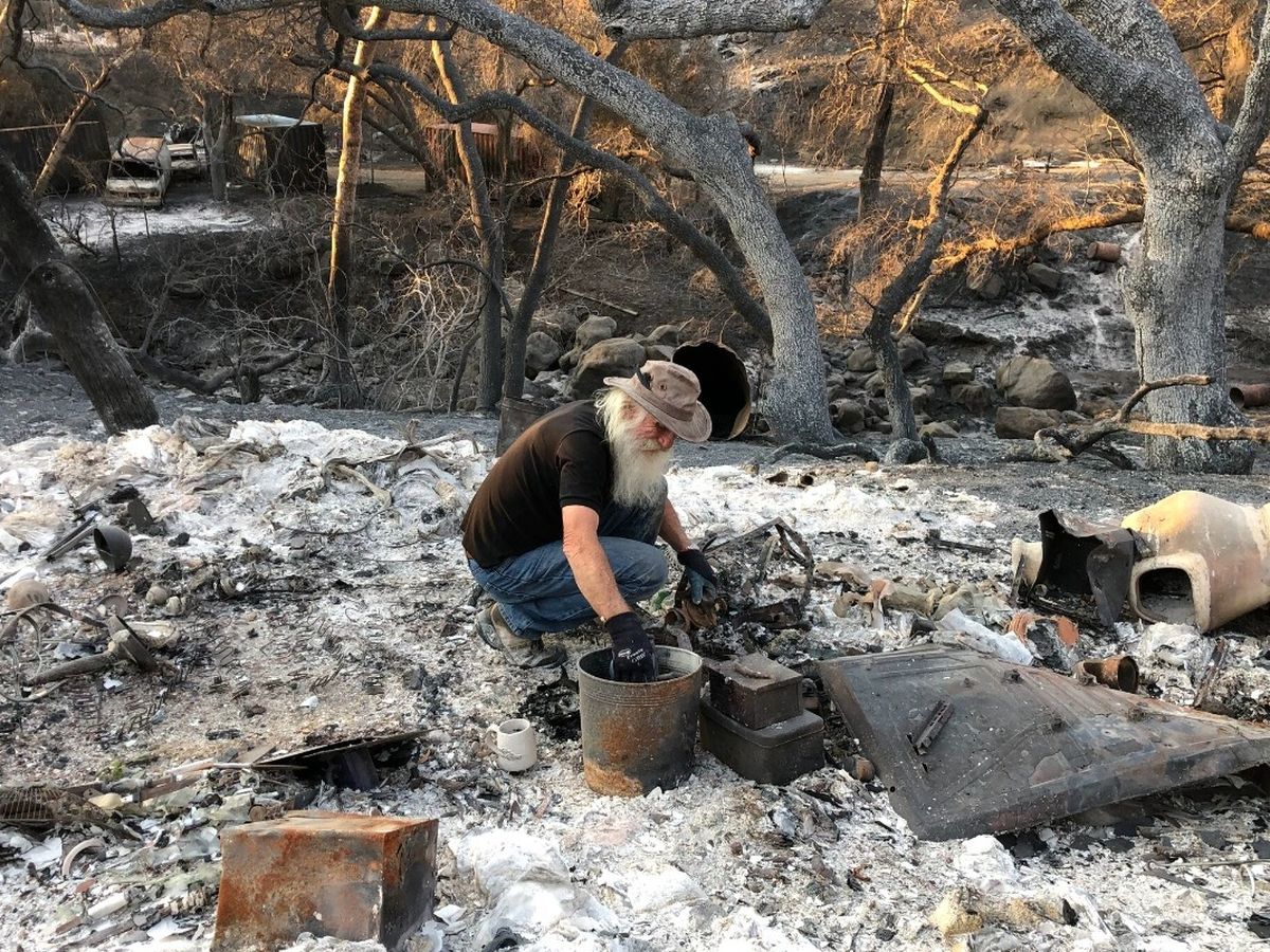 "The yurt, or circular tent-like structure in which he lived, had become a mound of ashes. Vestiges of melted aluminum were evidence of his vintage Airstream trailer. His rustic tool collection, tomahawks and axes, family heirlooms and important documents also were gone."