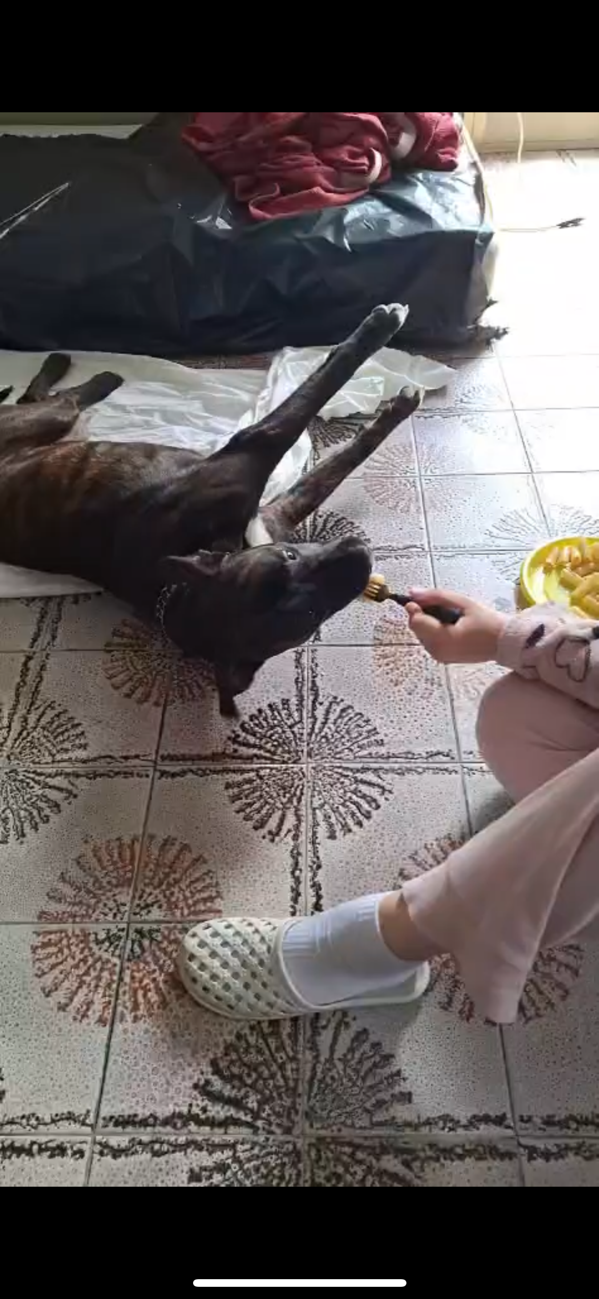 e lì a casa a terra che trema e non muove le zampe Per favore vi chiedo aiutatemi anche con un piccolo contributo ma cerchiamo di salvare questa dolcissima creatura vi prego..