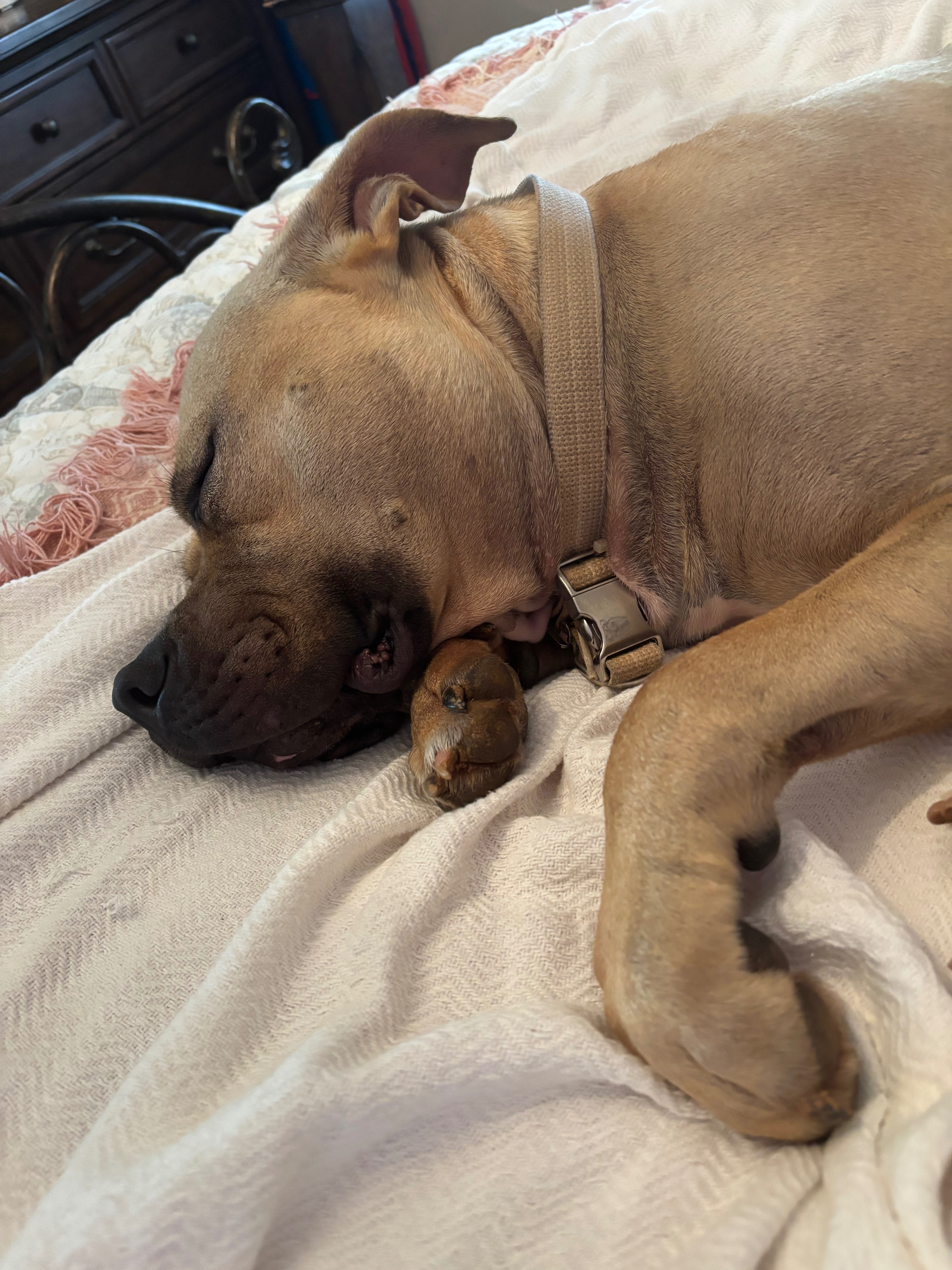Pierre went to the vet today. He has a ruptured cranial cruciate ligament. He has to be on bed rest for 6 weeks and then go back to check his knee and if it’s not healed he will need surgery. We got 2 weeks worth of the three medications he needed but I will have to fill the proscriptions for the rest in two weeks and so whatever money comes in will go to that and if any is left it will go towards the next vet visit.