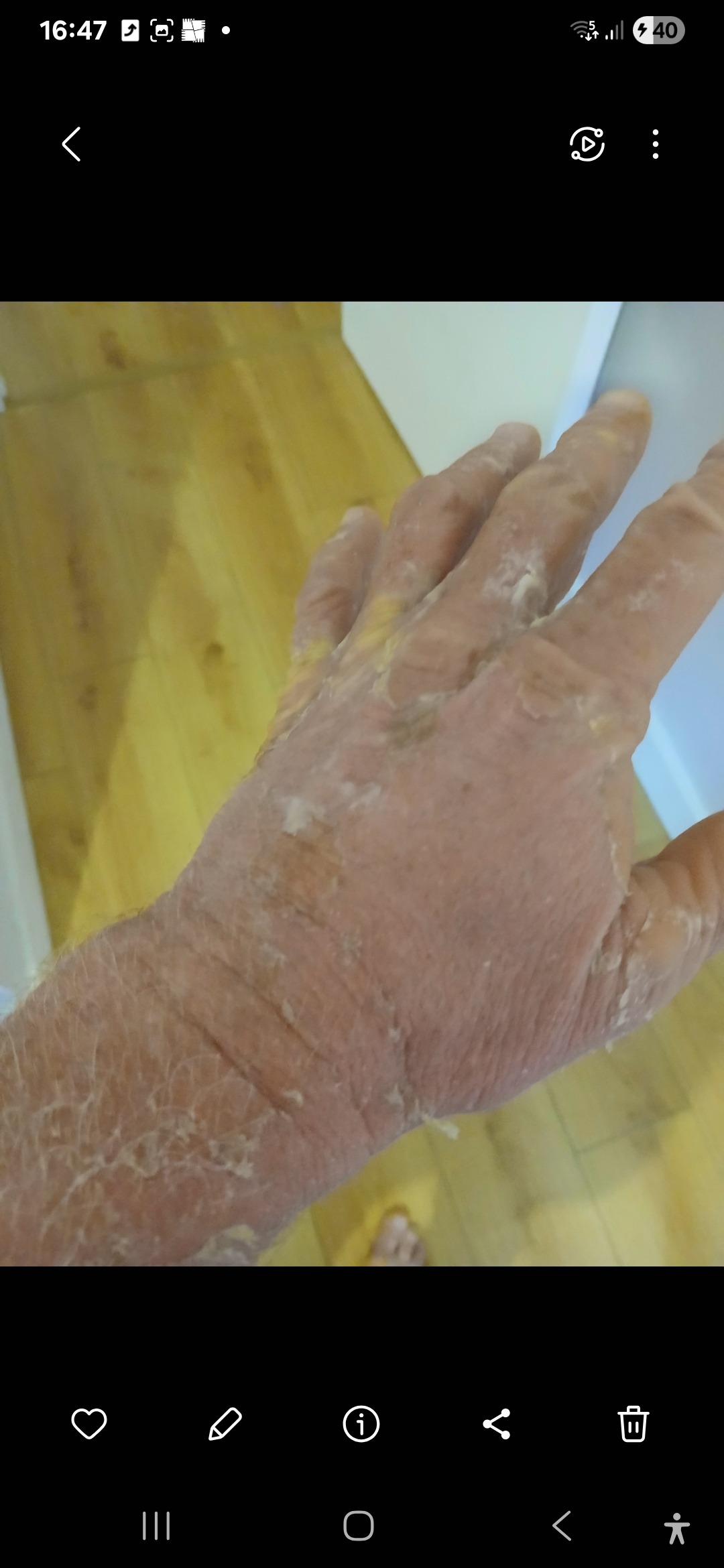 During my hospital stay, I received treatment to try to stabilise the condition, but PRP doesn’t have a quick cure. There’s no clear timeline for recovery, and every day since has been part of a long, exhausting healing process. Now that I’m home, my daily routine is intense: two baths and a shower every day, soaking my hands and feet in dermatological bleach solutions to prevent tightening and cracking, and covering my entire body in ointments and thick paraffin emollients. I also have to wear wet, ointment-soaked tights under my clothes to manage the symptoms and protect my skin.