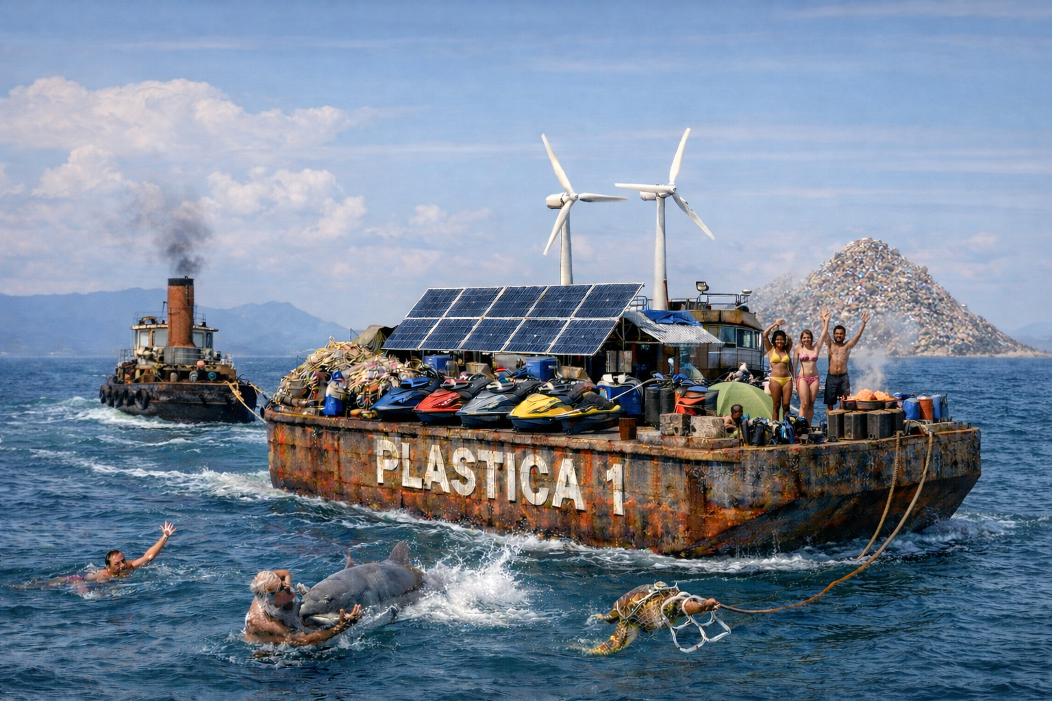 Founded in 2025, Pasticoa is the world’s 1st land free nation. With the livable mass being completely composed of salvaged material gathered at the vortex of the great pacific garbage patch.