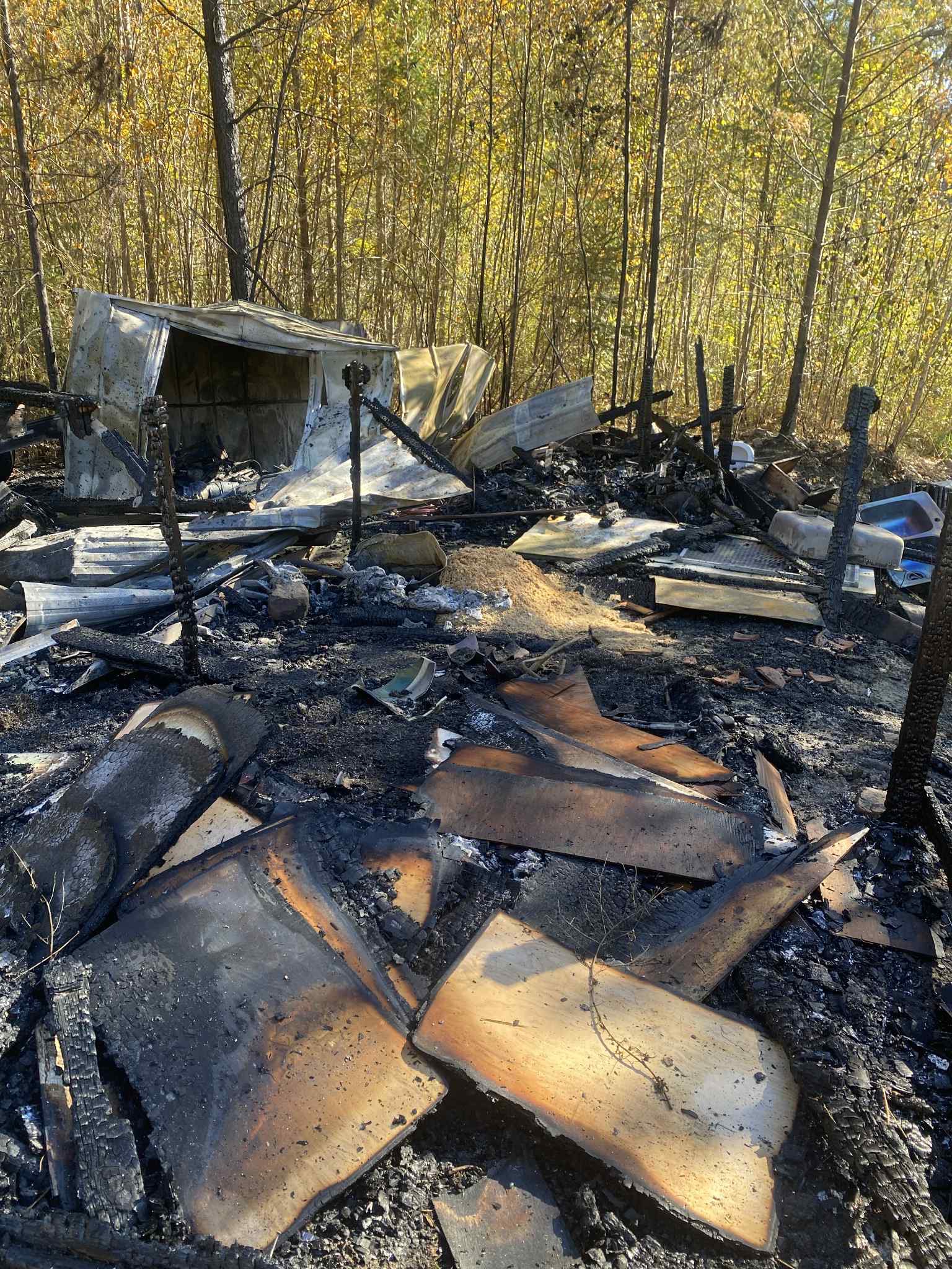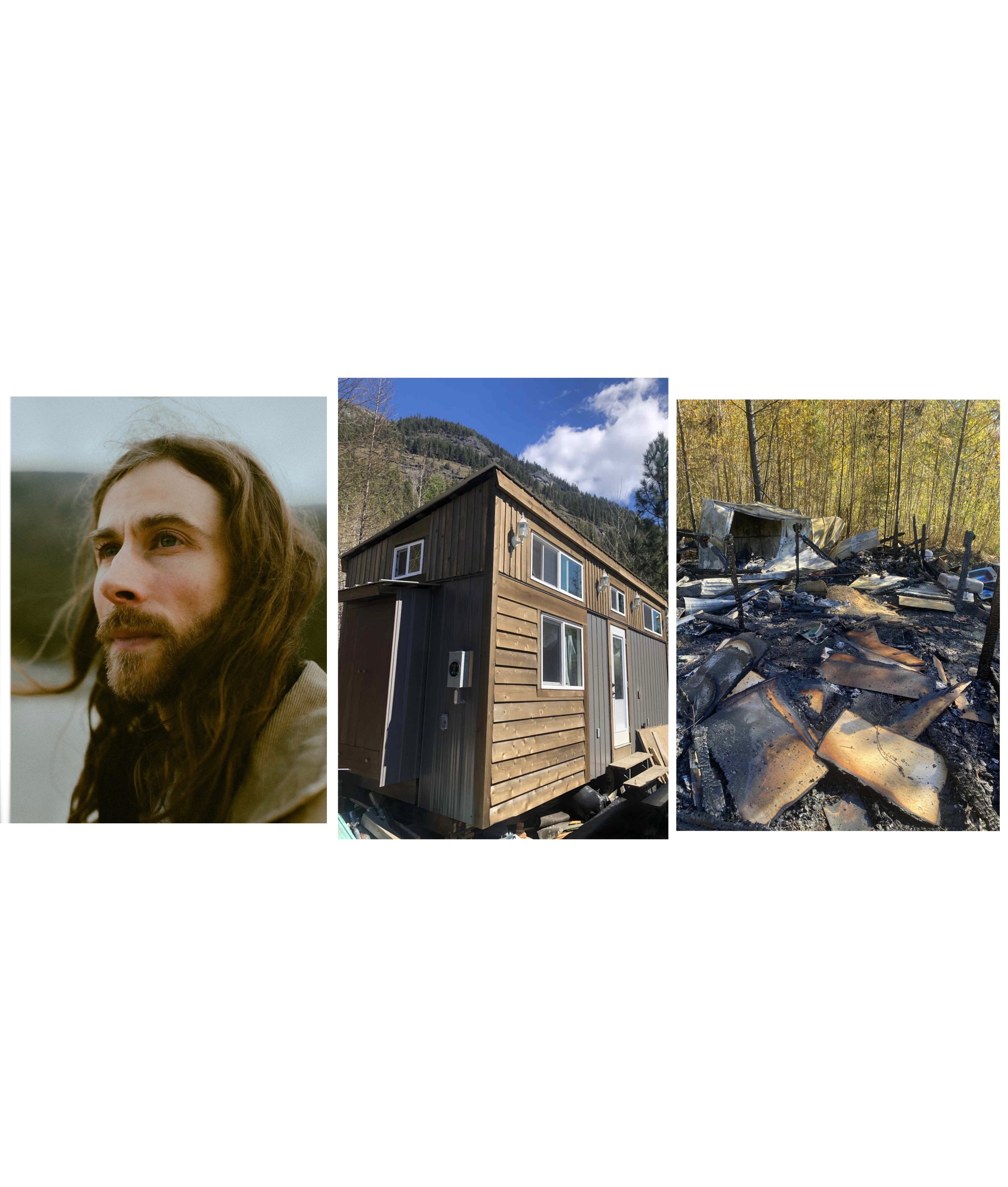 Yesterday Duff arrived home to find a swarm of police and fire trucks. The tiny home he had been working on for the last 3 years had burned to the ground just before completion. A solar battery he had installed the day before had malfunctioned and caused the fire to start. By the time he had returned home from town it was too late, the fire consumed everything.