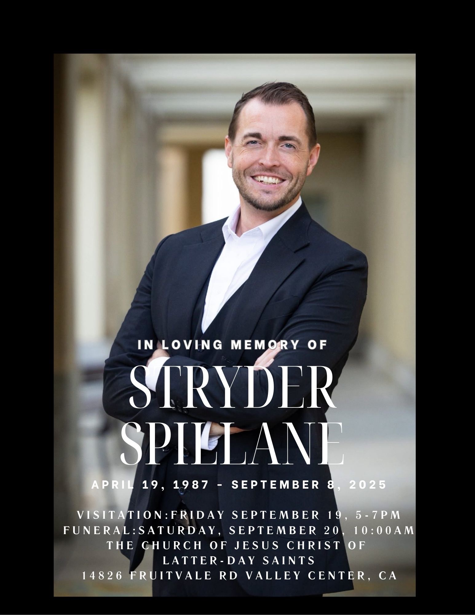 With heavy and broken hearts, we share the devastating loss of our beloved husband, father, son and friend to everyone he met. Stryder Spillane, who tragically lost his life in a terrible car accident on September 8th.