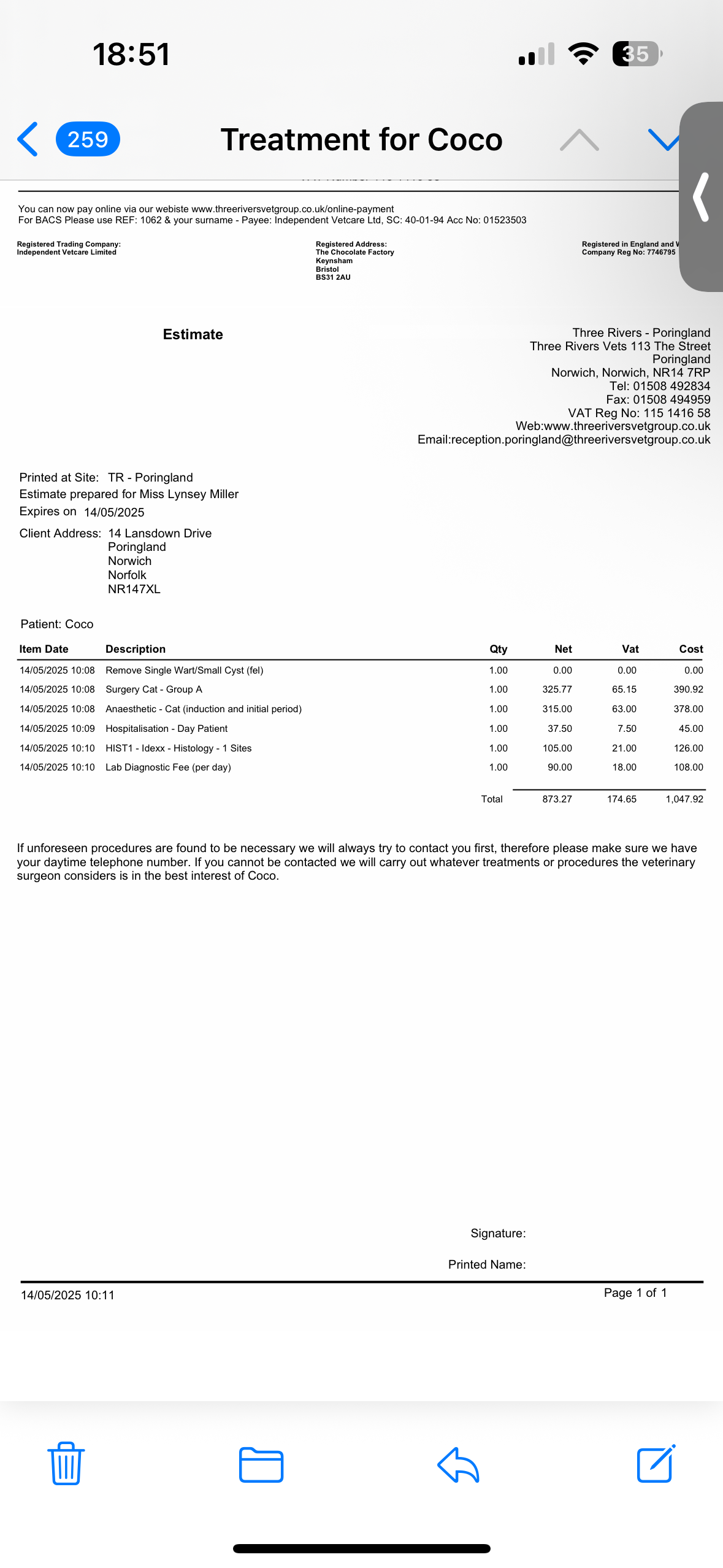 Whilst she still needs surgery and a biopsy I have managed to get a cheaper quote which I enclose in the photos.