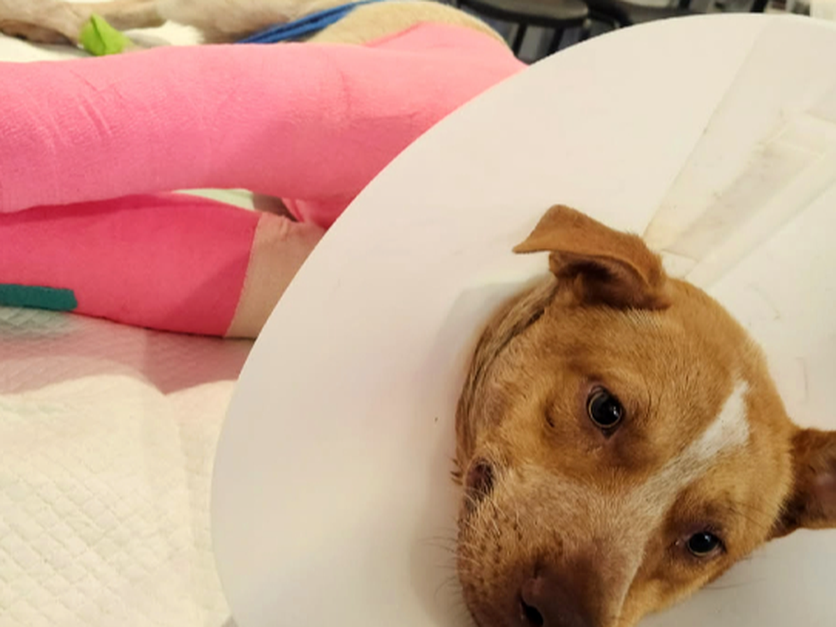 This sweet dog was hit by a car and left alone on the roadside. Both of his front legs are severely fractured, and due to the extent of his injuries, he will need to see a specialized orthopedic surgeon for treatment.