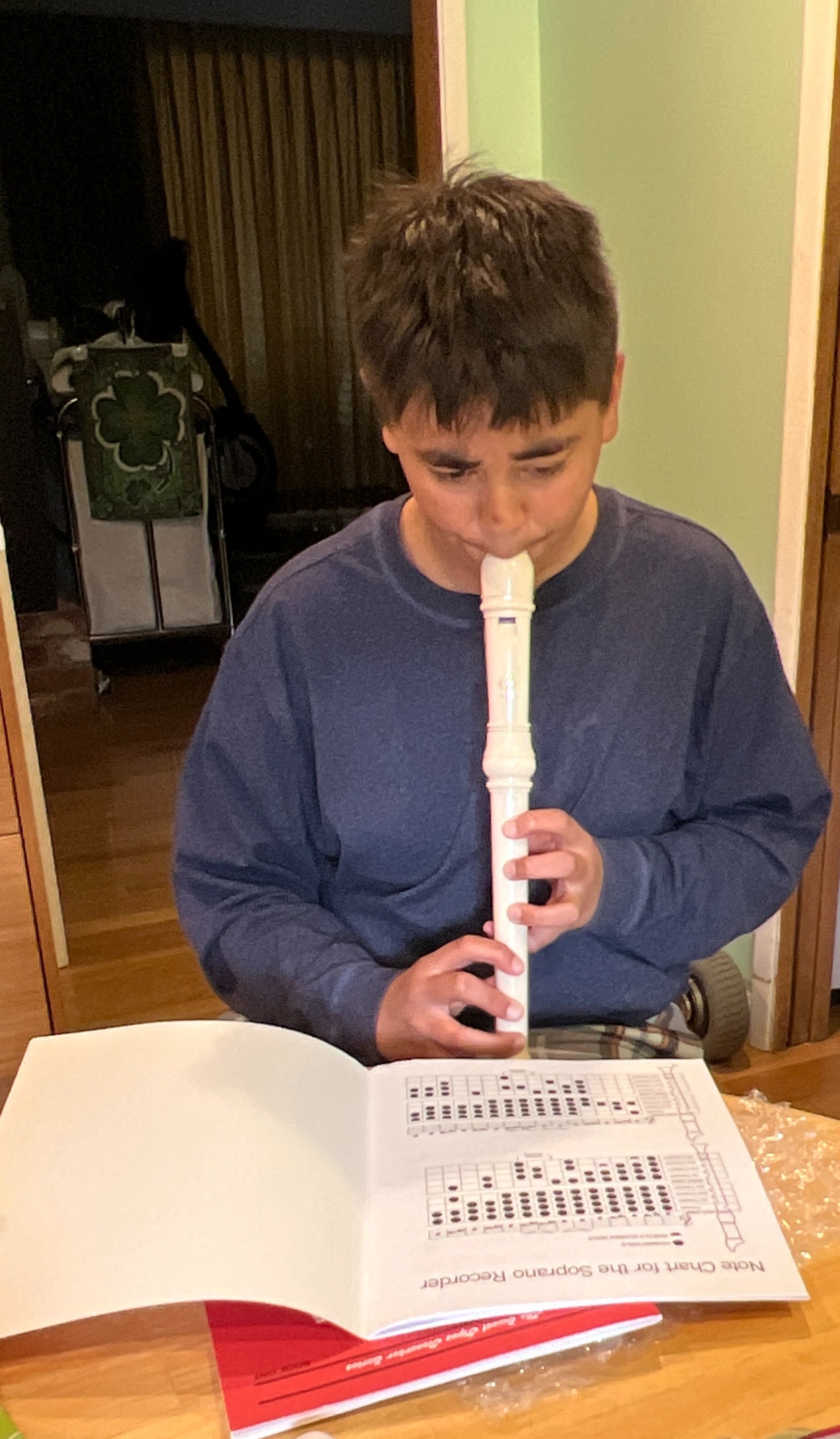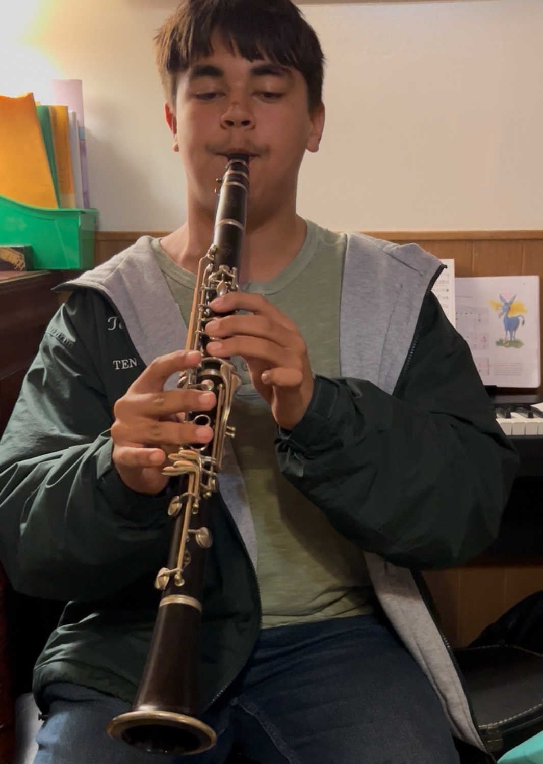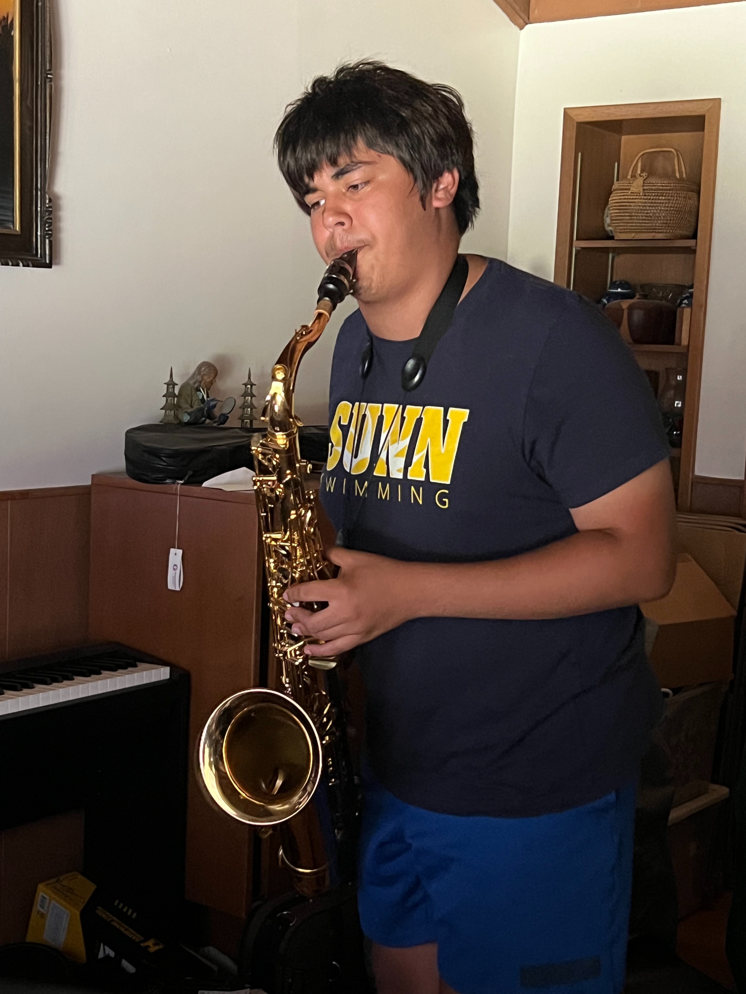 Currently, he has been thinking about acquiring either a bari sax or soprano sax, but his private teacher says it is time for him to learn flute! Our now dubbed "Music room" is getting full!