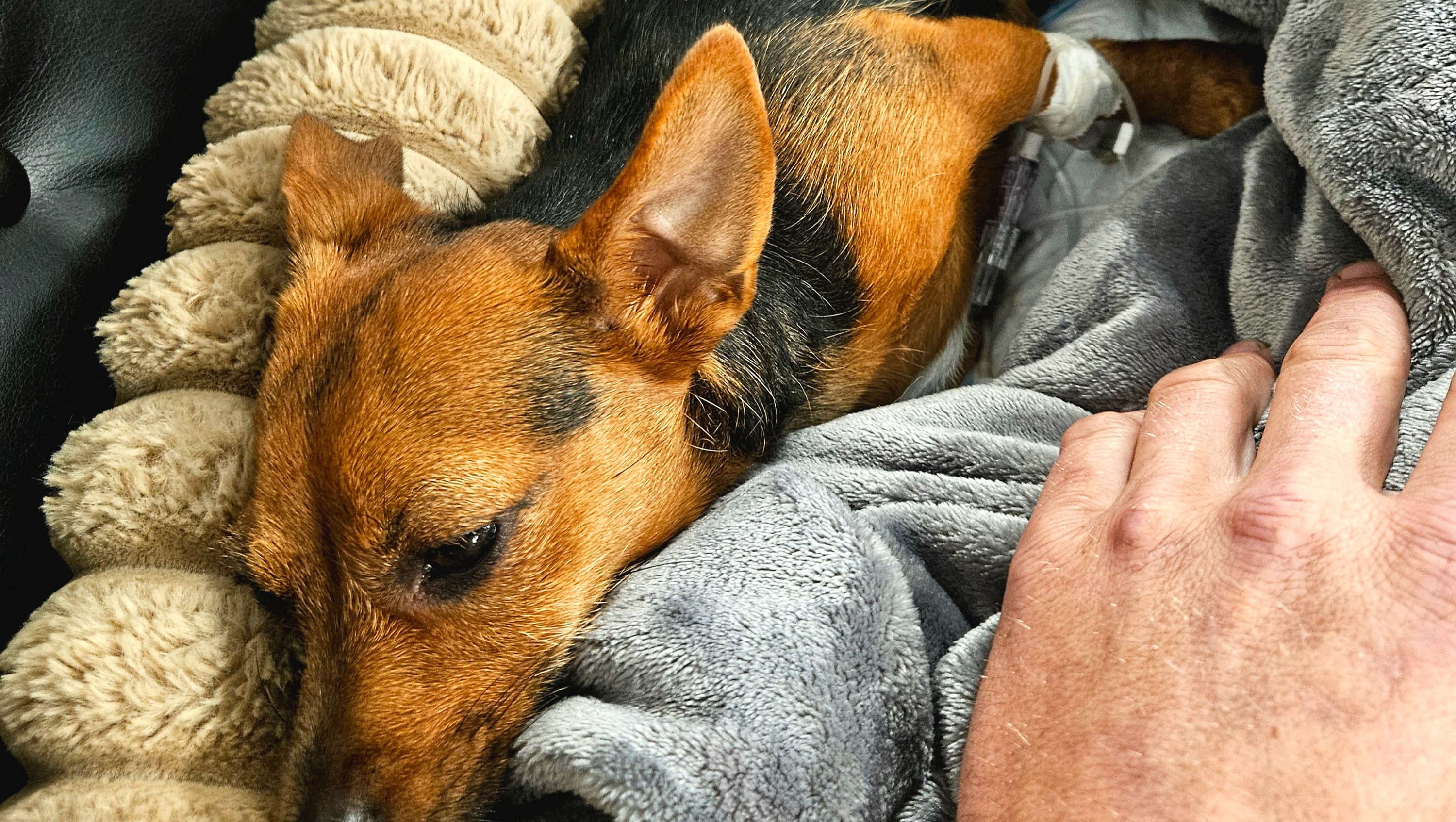 The surgery is estimated at $5,700. I had managed to save $2,900 from working again after a very difficult time in my life. Of that, I’ve already spent $2,000 at the emergency vet for blood work and X-rays to get her stable and ready for surgery. That leaves me with $900, which is everything I have left right now—but it’s not enough to cover the operation she desperately needs.