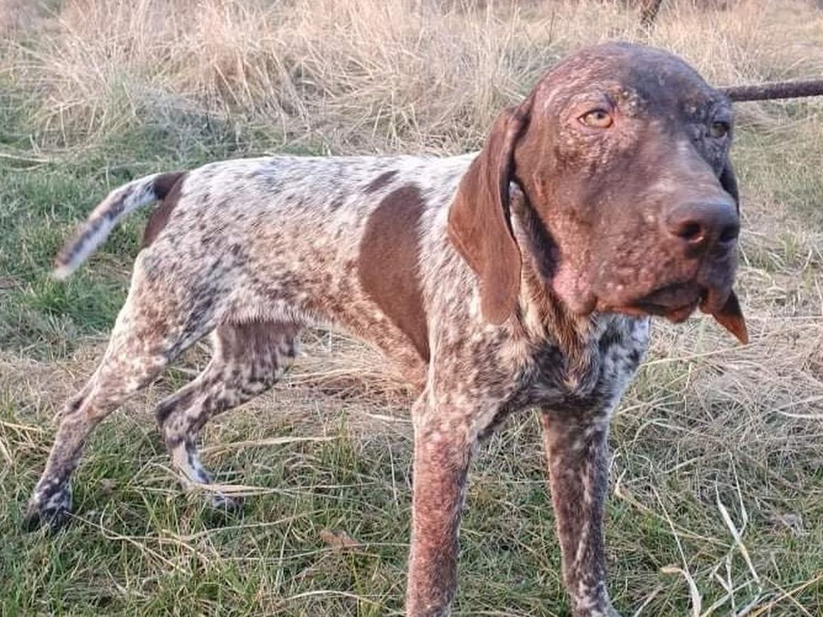 This is our youngster, GSP ODELLA, found tied with nylon rope to a fence early in the morning, February 7. She had been left tied up with another GSP youngster who we have named MATZ.