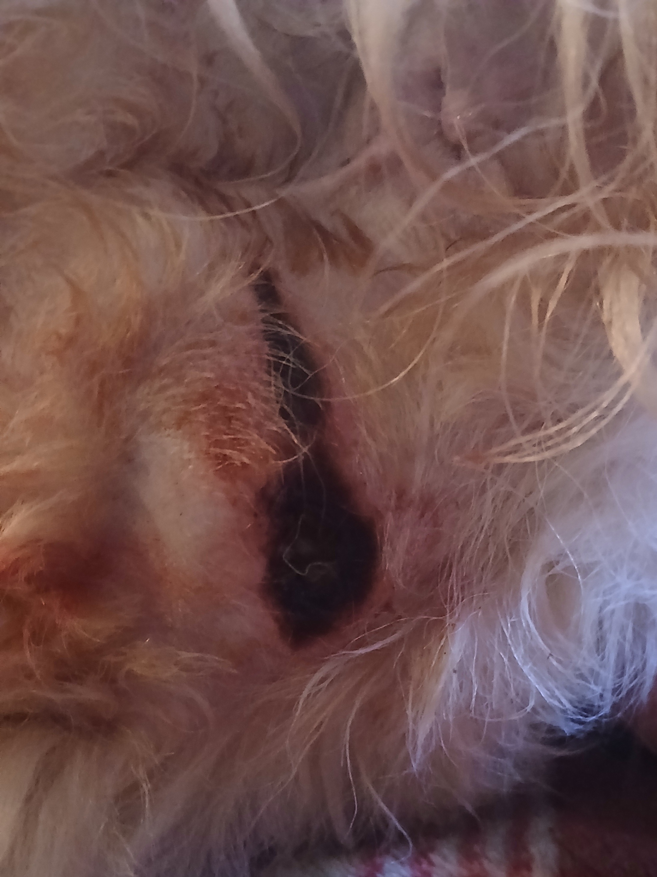 She wound up with a small wound on her bum in a very inconvenient place (because of course , that's close to the area where she pees and poops.)