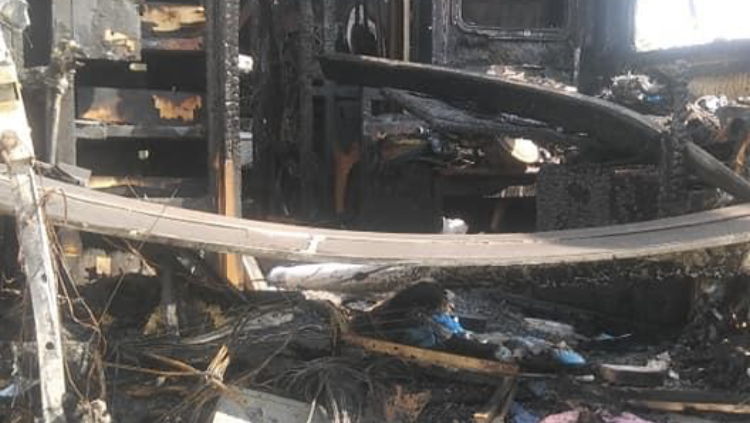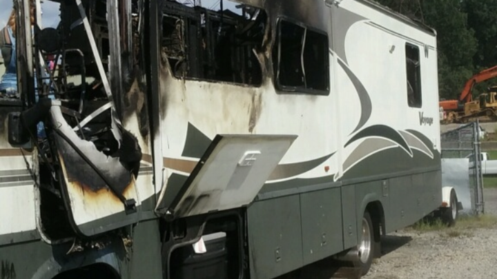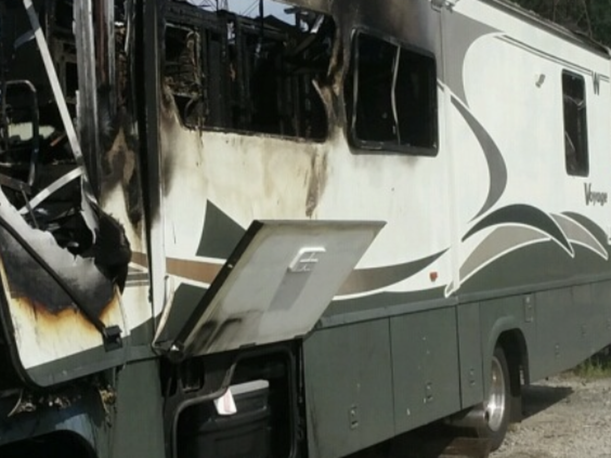 A couple weeks ago, as they were traveling to New Jersey , sitting in bumper to bumper traffic on Route 95 in Virginia their motor home exploded into flames. As you can see by the photo, the flames took place in the engine area and spread quickly. This area has the only entrance/exit where the fire broke out . They only had seconds to get out! They escaped with only the clothes they had on. NO time to waste grabbing a purse , medicine , paperwork or anything at all except their lives. Everything they owned including hard to replace documents were left to burn as they sat on the guardrail watching.