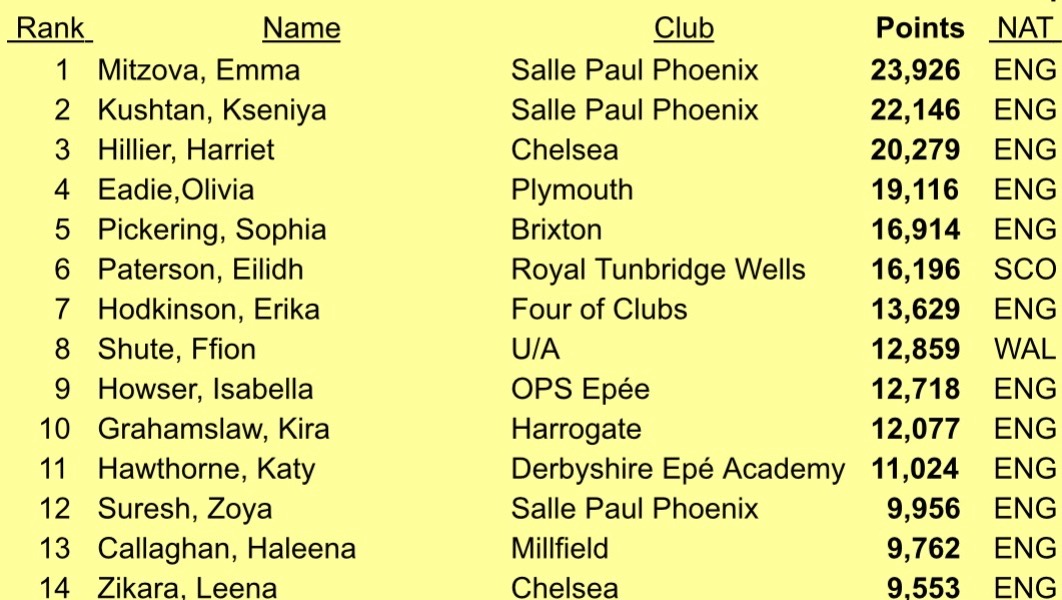 25th at the Geneva FIE Senior Satellite