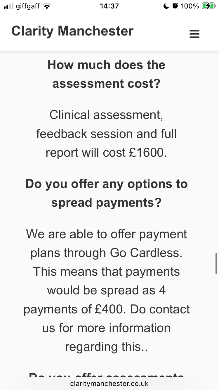 There are a few providers in and around Manchester (where I live) through which I could get my diagnosis within two months, and it would cost me about £1600. I cannot comfortably afford to pay for this; it would cost me the majority of my emergency