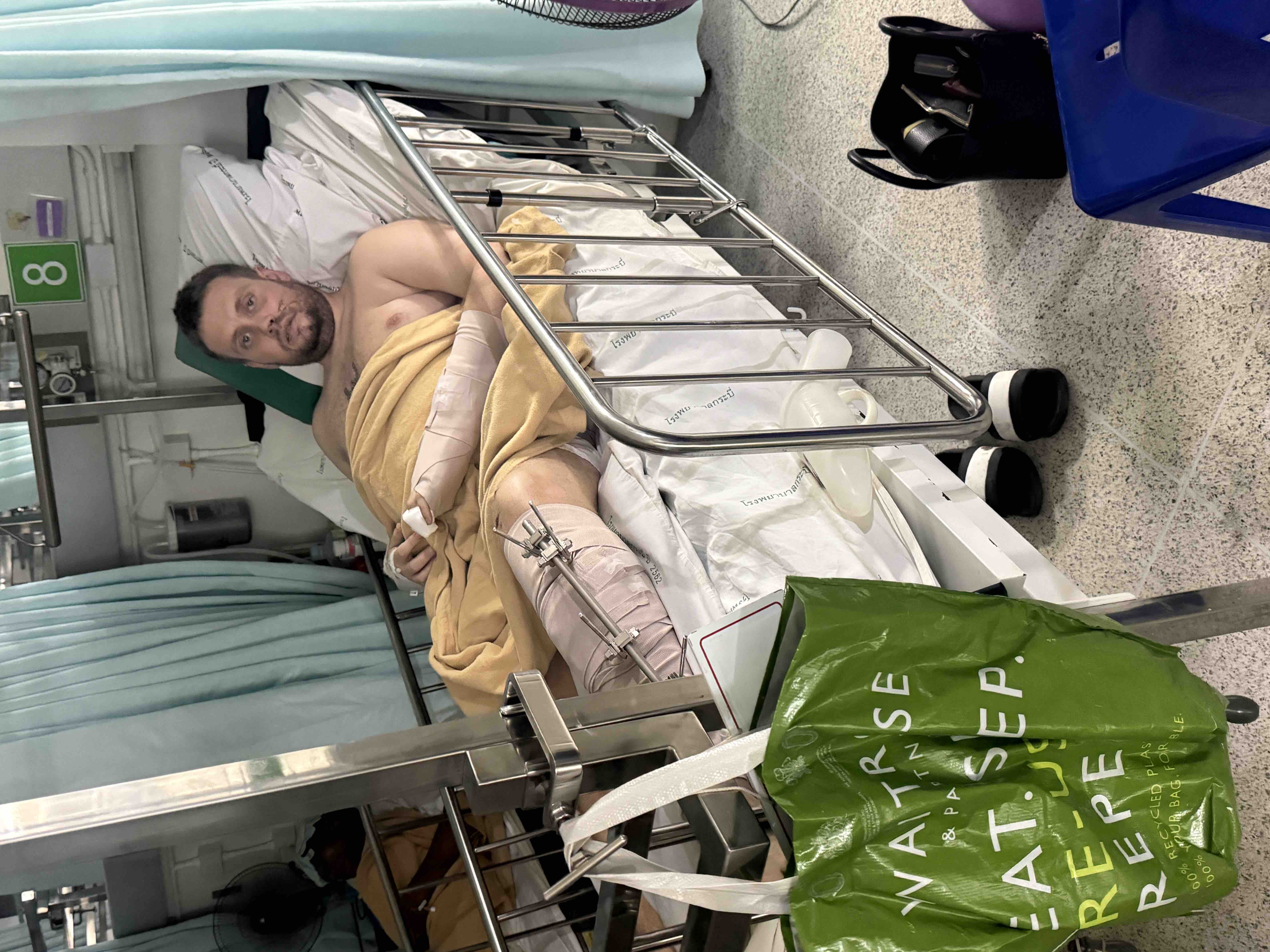 Instead, he is now lying in a hospital bed in Thailand with devastating life changing injuries after a serious road accident.