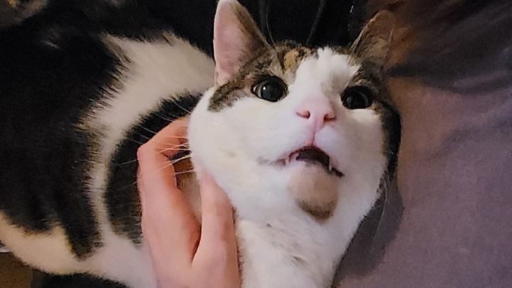 For a good portion into June, even with Moomoo rubbing all over my legs when I came in and talking to me when getting his food around, I was still inexplicably afraid to pet him most of the time.