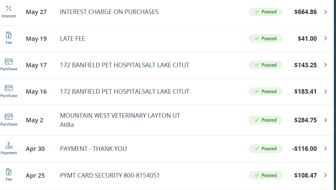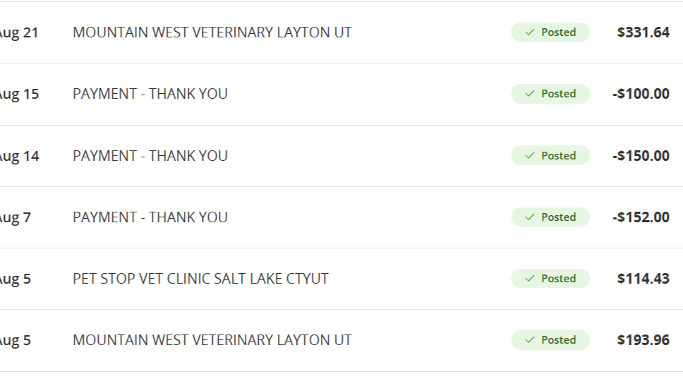 I recently left my full-time salaried job in August due to health issues. I only have a part-time job. So I am determined to pay off these vet bills in time.
