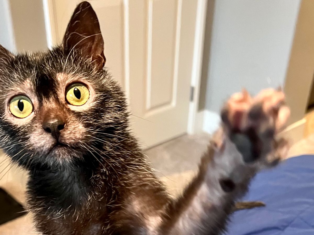 My name is Julianne Carlile. My one year old Lykoi kitten, Olive, is the love of my life in kitty form. We were treating a parasite issue that started back in October of 2022. The parasites have since cleared but she was given the diagnosis of FIP from a biopsy performed on her lymph nodes in January of 2023. FIP stands for Feline Infectious Peritonitis. It is a mutation of feline coronavirus that was considered to be 100% fatal up until a few years ago.