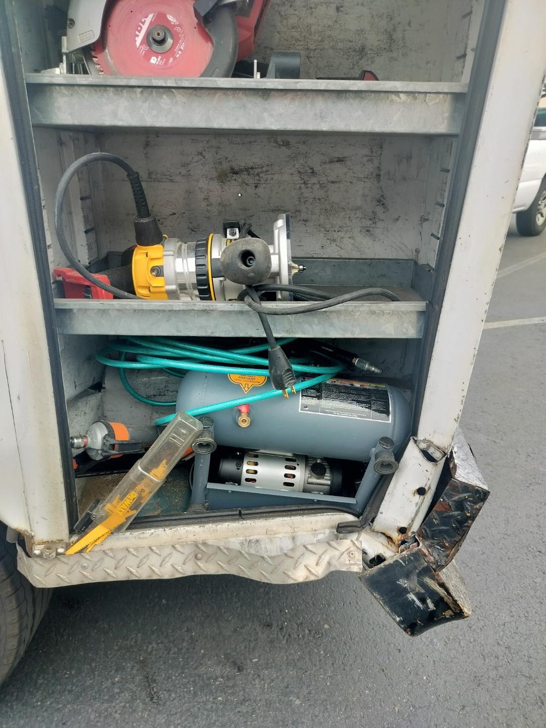 After the accident (Sept6-2025), damages to his truck include a bent frame, utility boxes that the doors are broken and do not close as well as the truck now vibrates and pulls to one side of the road. The vehicle is un-safe to drive.