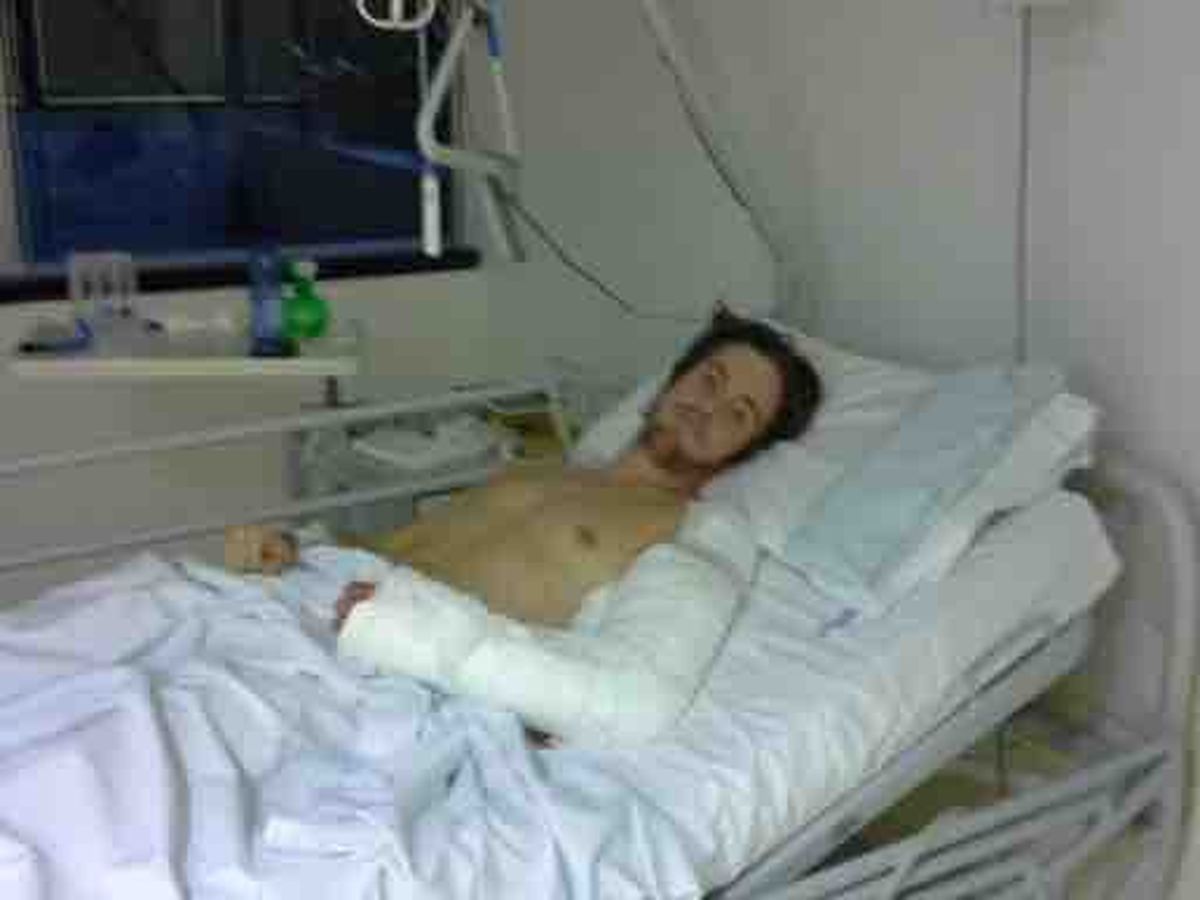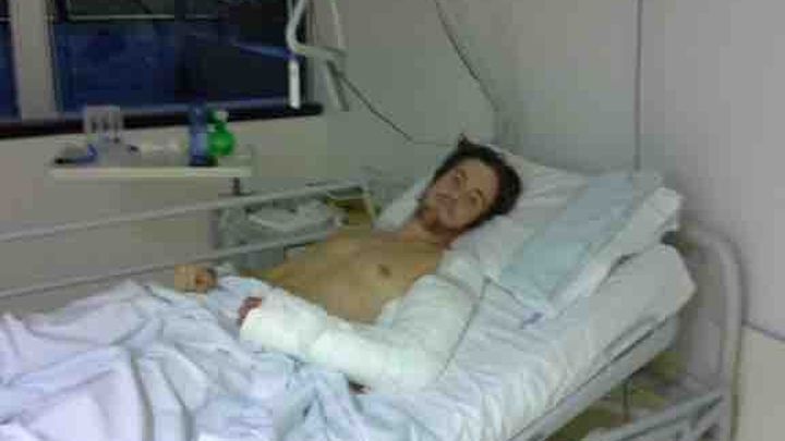 So far, he’s had his arm repaired with multiple surgeries but he still needs to have plastic surgery on it to finish the job. His pelvis is still awaiting surgery, and the doctors are just starting to look at his vocal cords. His spleen has stopped bleeding so they’re no longer worried about that. However he does have a very long road ahead of him.