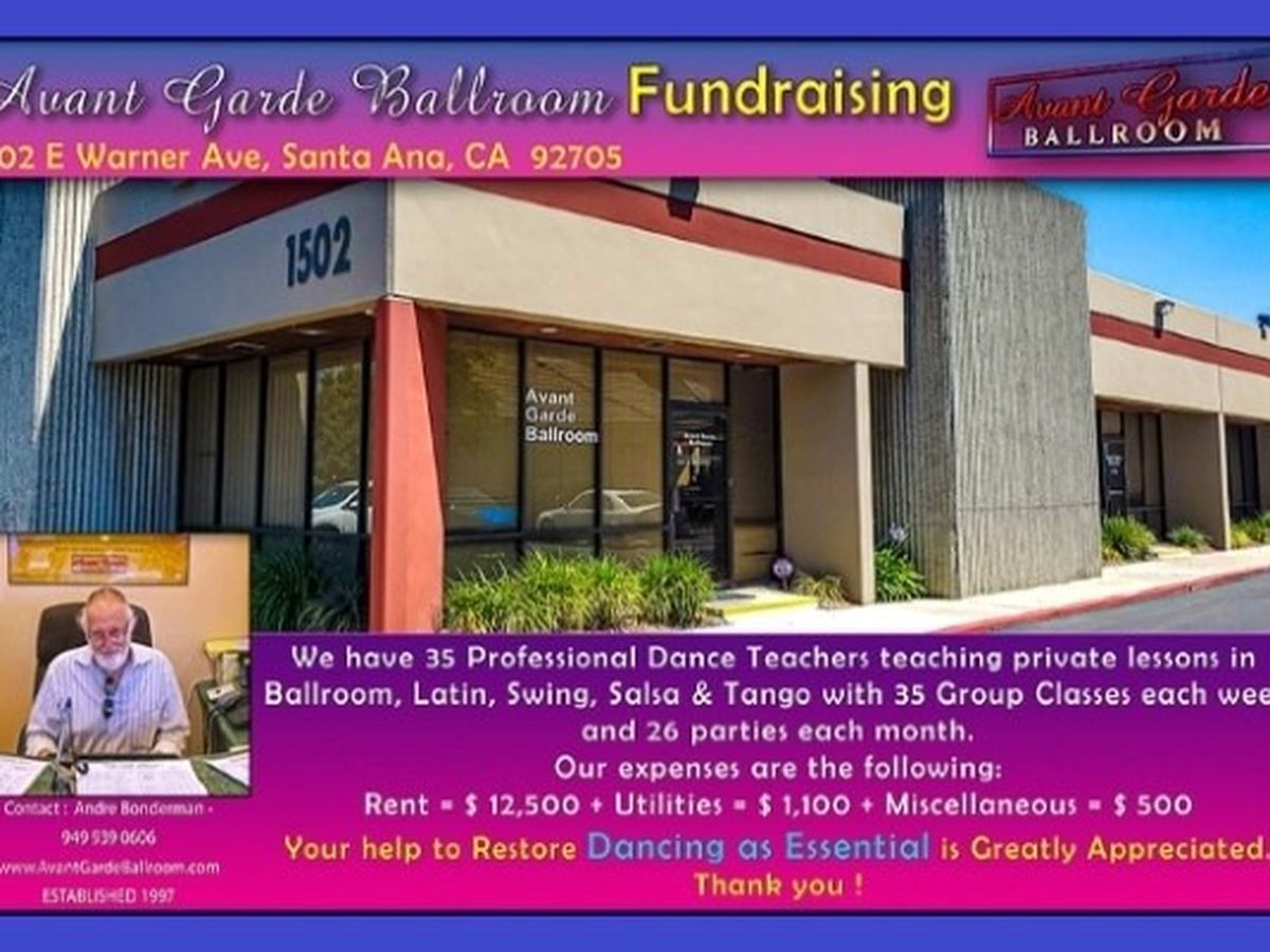 Avant Garde is home to more than 35 dance instructors and literally thousands of students in the Orange County and Los Angeles area. In addition to group and private lessons, Avant Garde Ballroom is the venue for almost 30 dance events monthly from Ballroom, Swing, Salsa, Argentine Tango & more. I know things are difficult for everyone but if you are in a position to help, your support will make a huge difference and be incredibly appreciated.