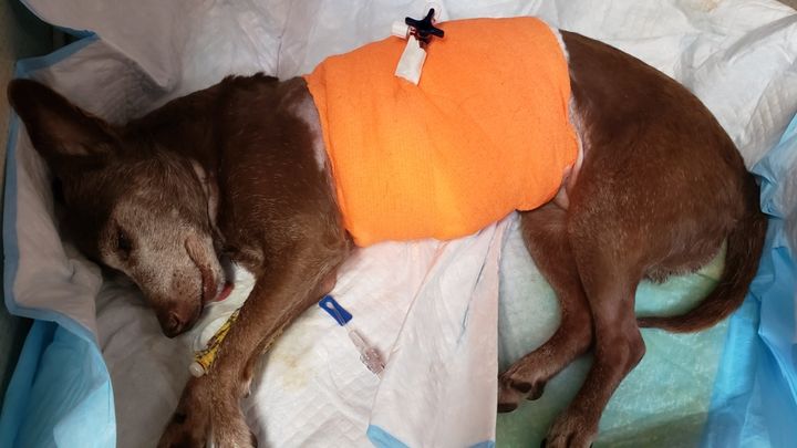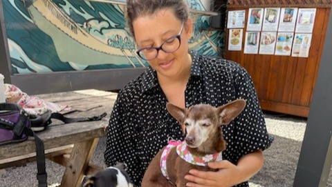 On Saturday, February 19th, Thaedra went to the Kula farmer’s market to shop for a few veggies. She brought her dogs along for the ride but did not bring her dogs into the market to shop with her. When she returned to the car, she leashed Mochi up and took her out for a potty break. They walked about 10 feet from the car where another dog attacked Mochi, leaving her with multiple injuries. Thaedra was left holding Mochi’s open wounds while trying to stop the bleeding. Mochi was taken to the emergency veterinarian where they explained to Thaedra that they have saved dogs that were in worse condition.