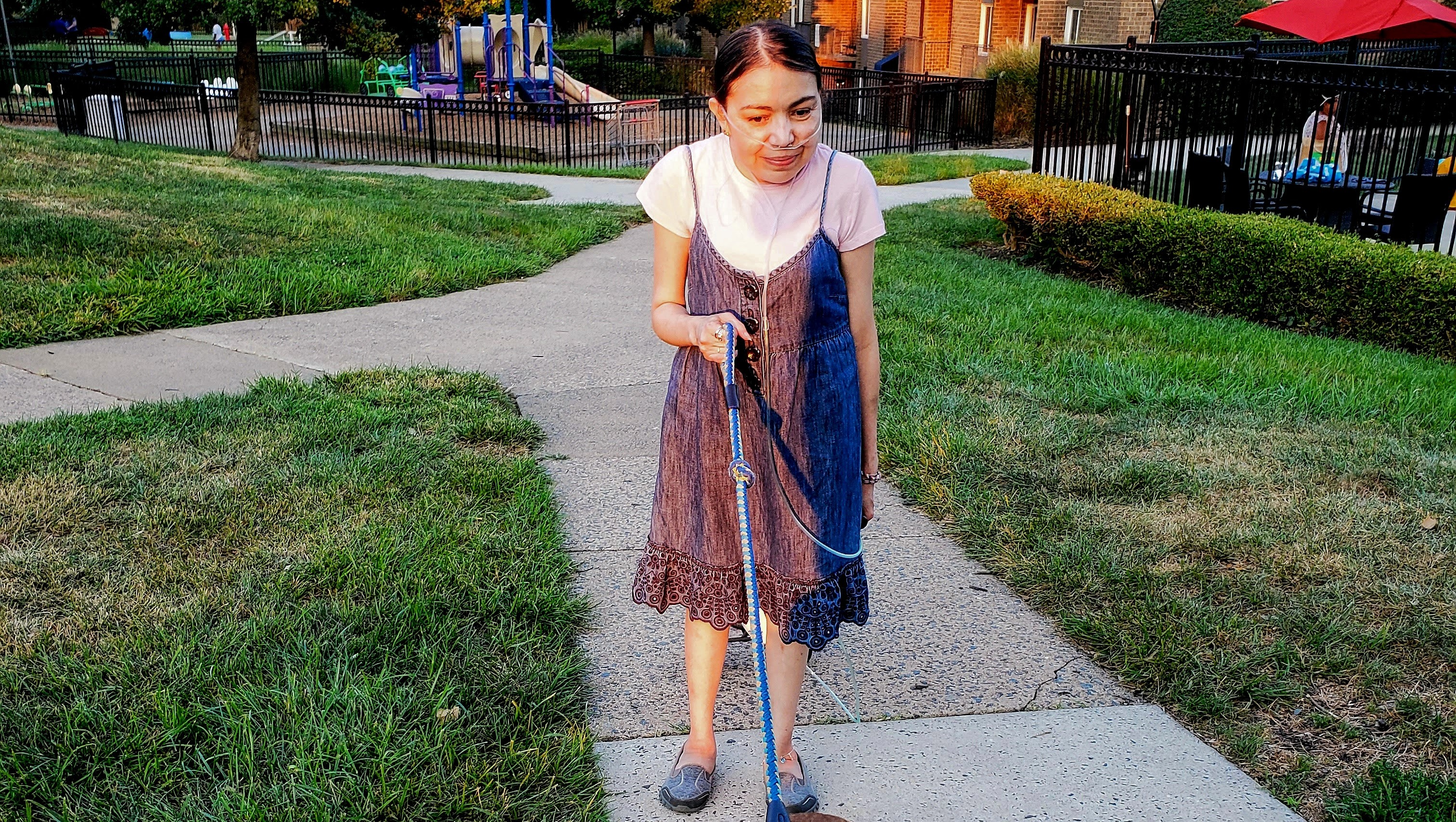 This is Mimi and her dog Shakie....they are great members of the neighborhood and dog park community. Last year Mimi was in the hospital and diagnosed with Pulmonary and breathing failure....After many months in the hospital and treatment...Mimi is finally doing better although she requires to have Oxygen 24/7. Mimi is doing the best she can with her help.
