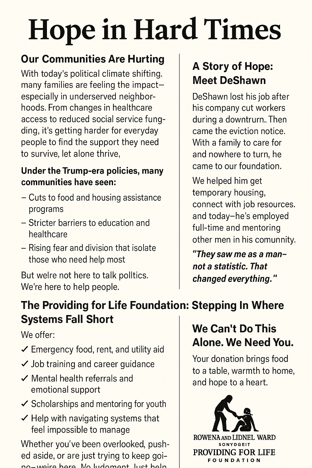 ❤️ The Providing for Life Foundation: Stepping In Where Systems Fall Short