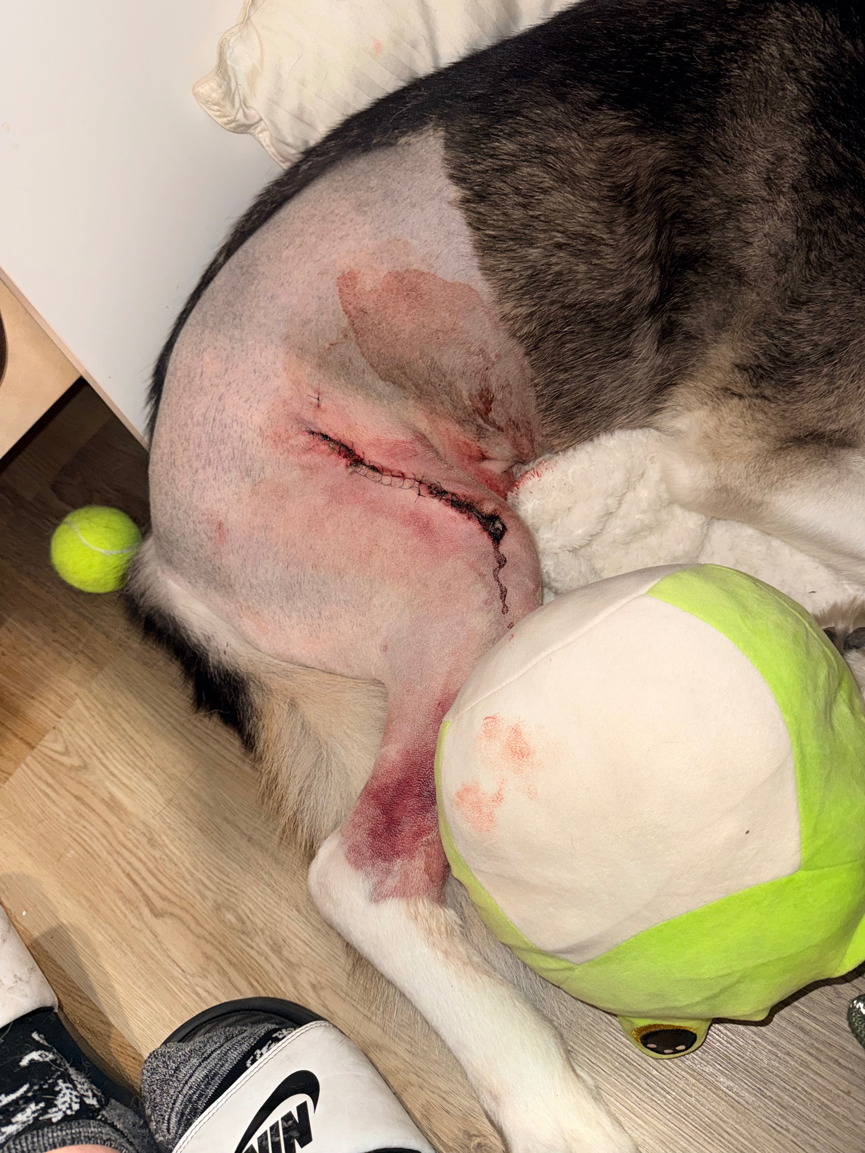 Hi, my name is Brad and I'm making this with hope from the bottom of my heart to get help for my best friend whose dog, Akuma, was violently attacked by a pit bull during an innocent walk. He was yanked off the sidewalk, dragged into the street, and suffered severe leg and side injuries requiring emergency surgery. The other dog's owner did nothing and fled after it took 5 men to get the pit bull off of Akuma. The emergency care he needed was immediate and incredibly urgent for his well-being. My best friend, of course, put up everything she could to get Akuma the care he needed, but due to how severe Akuma's injuries are, the vet bills have become overwhelming. So it is with humility and hope, we ask any and all compassionate individuals everywhere and anywhere for help. Anything—truly anything—helps her and her boy Akuma. If you are unable to give, we ask for you to please share this; it would mean more than you could ever know. Please keep Akuma in all your prayers. From the bottom of our hearts, we thank you for taking the time to read this and to care.