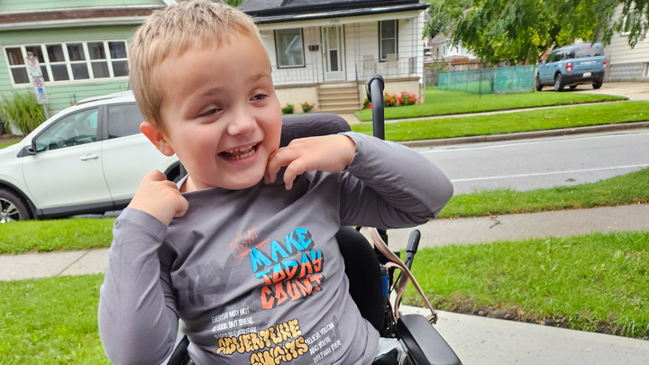 He was also born with club feet, dislocated hips, bladder and bowel incontinence. Due to the spina bifida Sylas uses a wheelchair for his mobility.