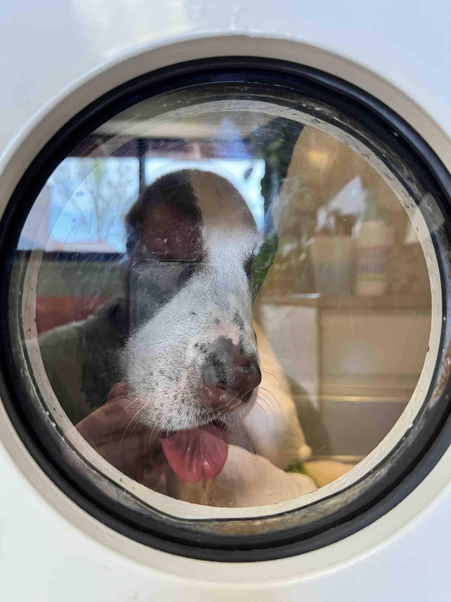 On the following Tuesday she was discharged from the Animal hospital but we had to take her to a Veterinarian hospital in Fort Collins that has a hyperbaric chamber for animals. Thankfully that drastically decreased the swelling and recovery time. Cookie finally made it home and was able to rest and was happy to be smothered in love and affection.