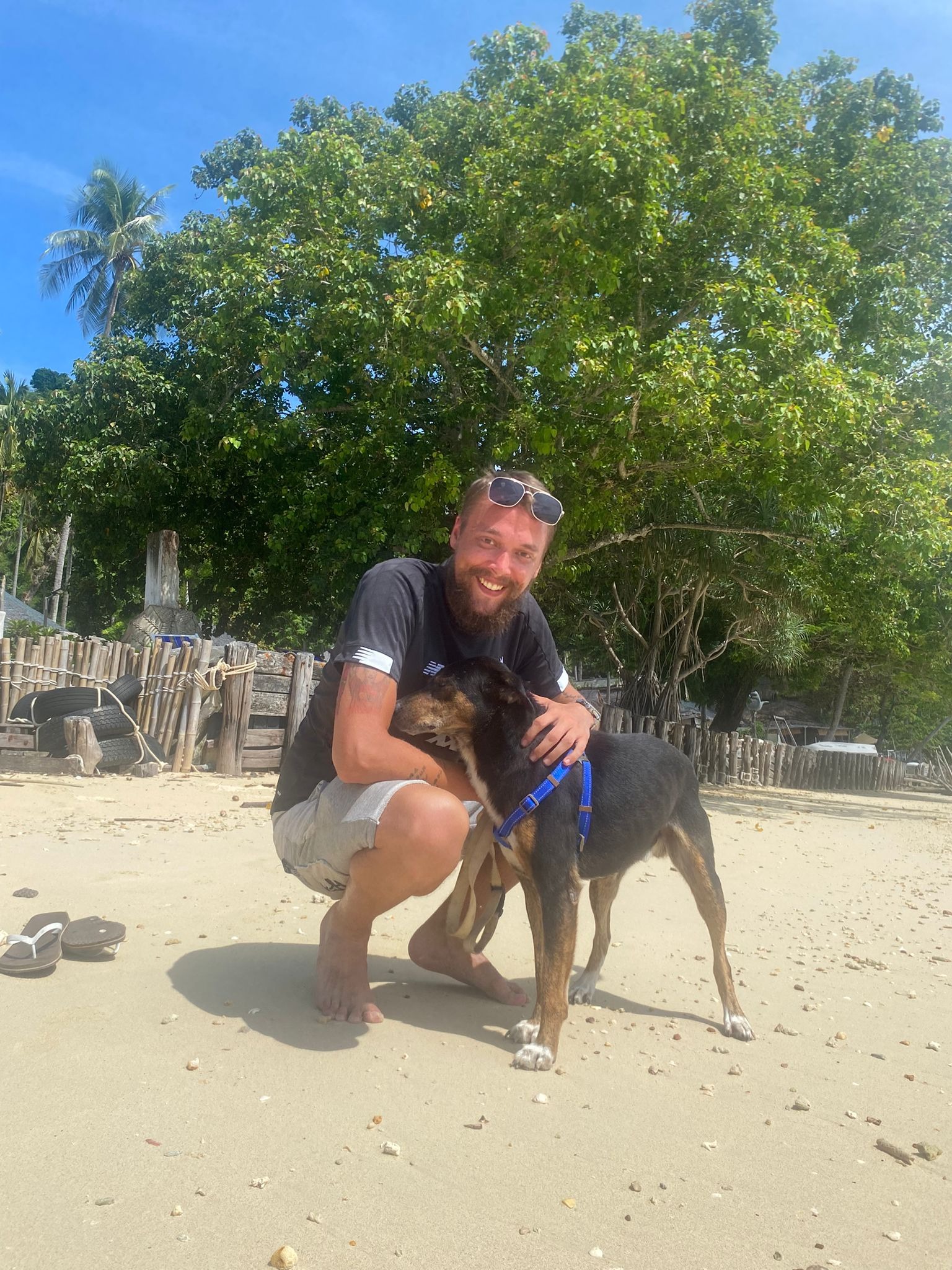 During our stay in Thailand we have fallen in love with this gorgeous boy, Baiden. We met him on a tiny island and the whole time we were there he never left our sides. He would sleep on the balcony and greet us first thing in the morning, then head down to breakfast with us and wait patiently outside until we had finished and snuck him a couple of sausages! He would then spend the day with us at the beach and look after our things while we were swimming, often swimming into the sea to be with us. He would then wait for us to get ready for dinner and again wait patiently outside until we had finished. We would then spend the rest of the evening together on the balcony or at the beach until bed time ready to do it all again the next day! It really broke our hearts to leave him behind at the end of our stay and ended up extending our holiday so we could go back and see him. When we got back to the island and he saw us he ran straight up to us, tail wagging and seemed just as happy to see us as we were to see him. We knew we couldn't leave him behind again so made the decision to do our absolute best to bring him home to the UK with us. We spoke to some of the local people and found out he used to have an owner who was from Myanmar, and that his name is Baiden - his owner had to return home due to the war and couldn't take Baiden with him. Unfortunately his owner was killed, while fighting in the war so Baiden was left a stray. The local people were very happy when we said we'd like to take him home with us. We spoke to a few animal places and they all said that it will cost around £2500 to bring him back to the uk. He also has heartworm which can be treated but will cost an additional £250-£500. We are desperate to bring him home but just don't have the funds at the moment so any help you can give us would be greatly appreciated.