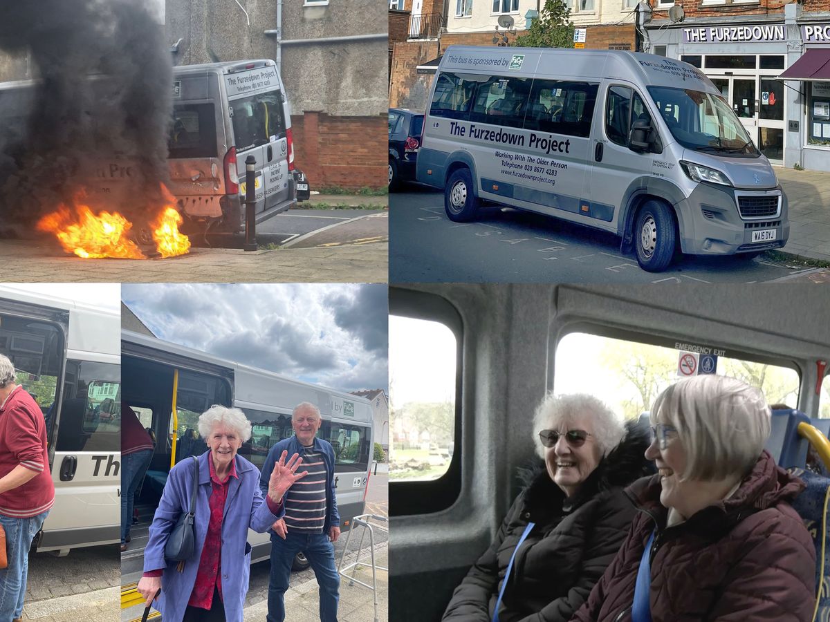 The bus was damaged by fire on Friday 20th October, when an electrical junction box in the pavement outside The Project burst into flames next to it. There were no injuries but the van was damaged and has had to be taken out of service, we don't yet know how serious the damage is and the insurance will help, but we are having to hire a Wandsworth Community Bus whilst the repairs take place.