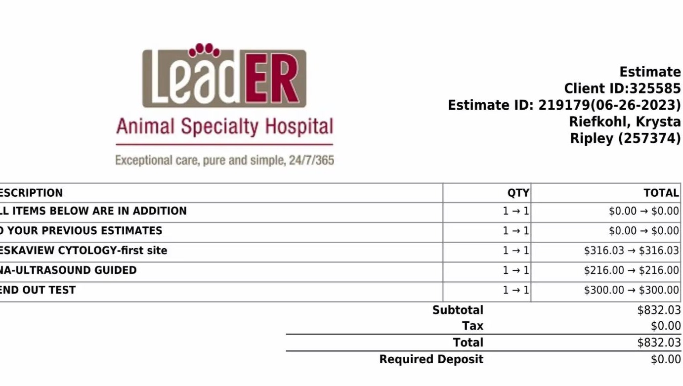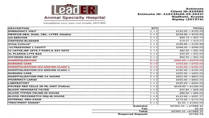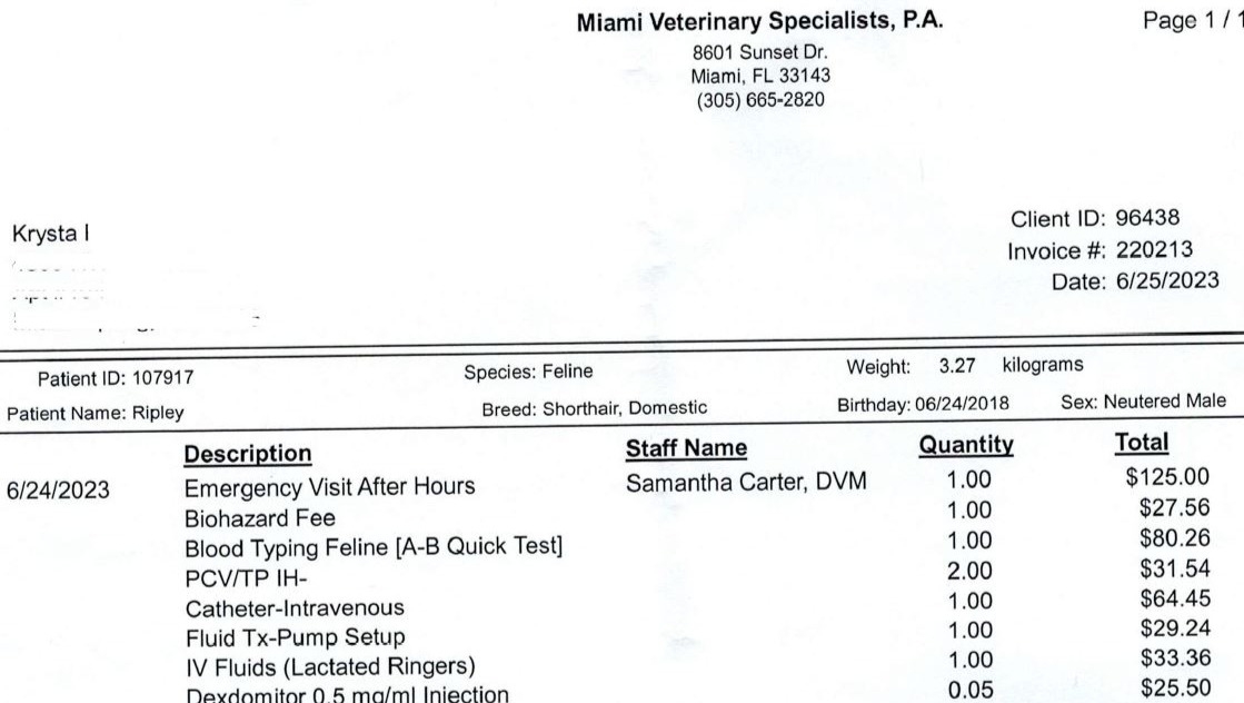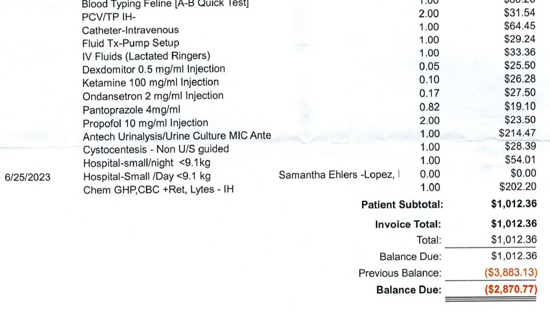 However, every day Ripley spends in the ER, it's another addition to the bill; they will not treat him until the requested procedures are paid first. I've used my available cash and am now dependent on credit cards and a pulled loan. I'm quickly running out of options to save his life.