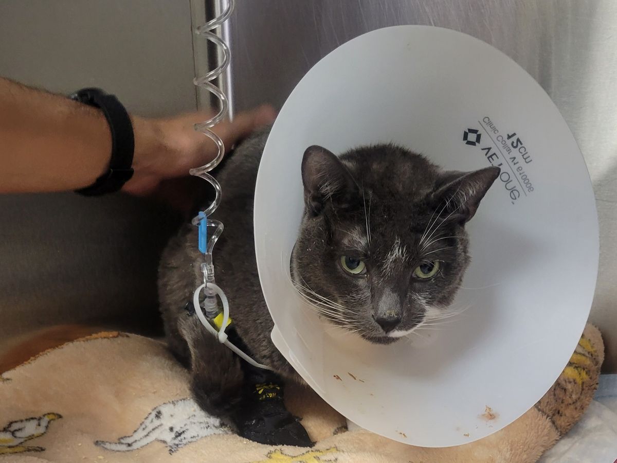 On a recent vet visit, after some concerns with his lack of appetite, he was prescribed a special diet with the belief that it was simply an allergy. No blood work was done. Fast forward 3 weeks, his desire to eat had not improved, he continued to lose weight and we were back at the vet's office. His urine and blood cell counts were tested, which determined he is suffering from acute renal failure and would need to be hospitalized immediately. He's been to two separate ERs, had three blood transfusions, and is under antibiotic treatment. Although there's been progress, his red blood cell count levels and kidney values have not yet normalized. The specialist believes that if he has Feline Infectious Peritonitis (FIP), he'd be able to start a successful treatment plan. This seems most likely, as lymphoma was ruled out.