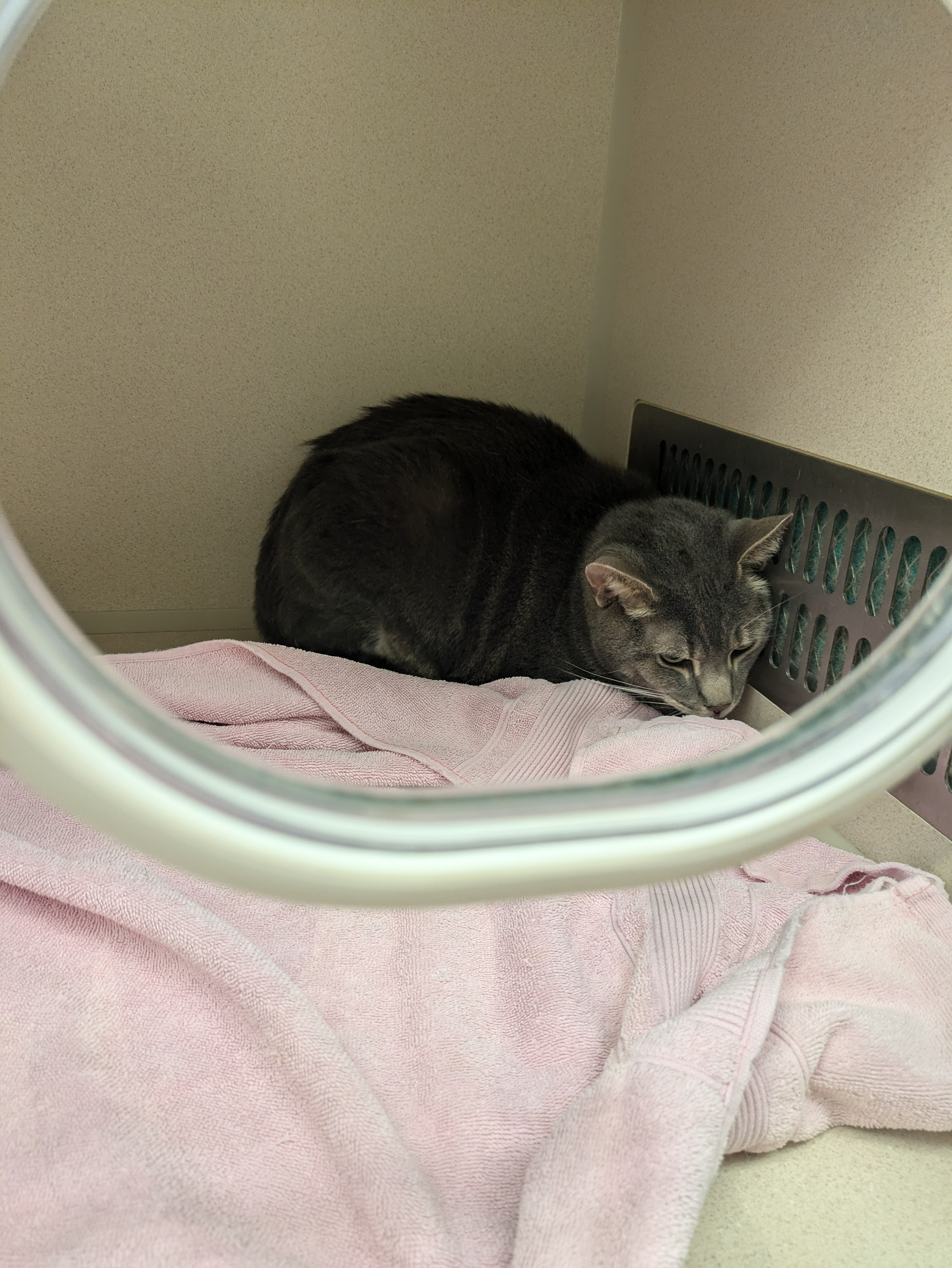 I will update as I learn more, but the prevailing thought right now from the vets is that he has either a respiratory infection or asthma, the latter of which would require him to use an inhaler frequently. All in all, his stay there is going to cost anywhere from $1700 to $2700, in addition to his prescriptions, injections, and x-rays.