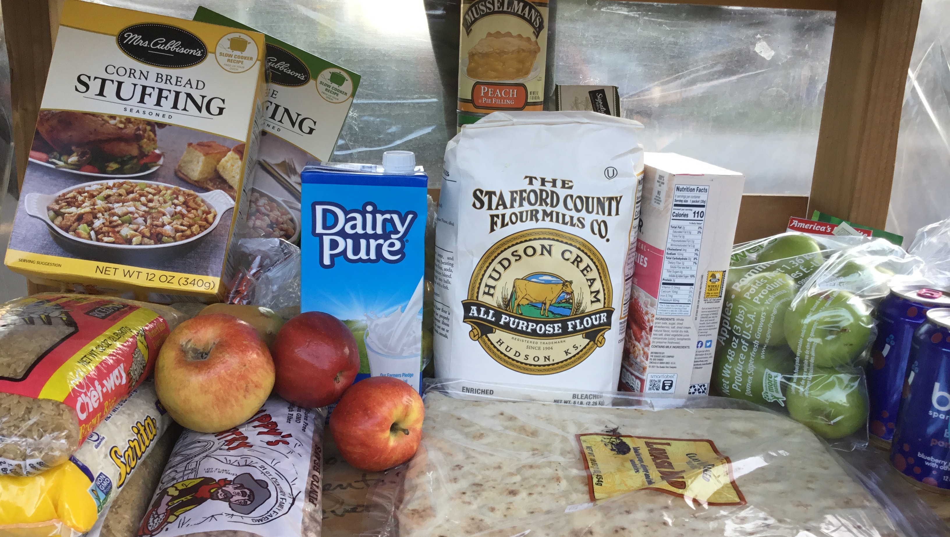 To supplement what's offered, volunteers go to food pantries and pick up what's left after distributions. We have a commitment for community garden produce once a week. Volunteers shop sales and discount shelves in markets. Several times each day the table is cleaned and organized.
