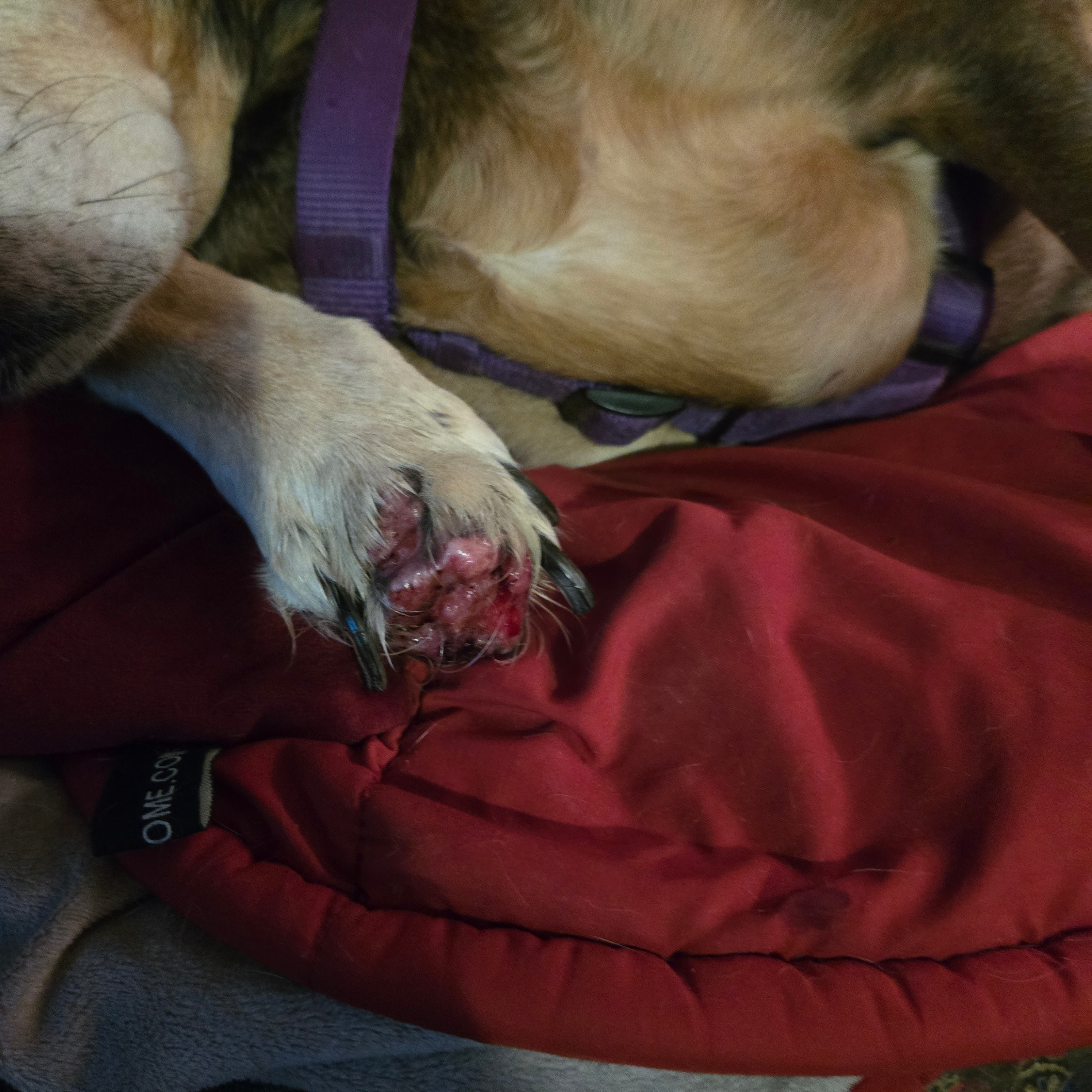 But we will fight for her. The vet that we had let her and us down unbelievably! She needs to see a veterinary surgeon as the toe has now swollen so bad growths have taken over her paw. This has now greatly affected her quality of life in terms of mobility. Her pain is obvious despite our efforts to keep it clean and wrapped, and to keep her from biting and licking at it.She refuses to keep bandages on or a cone, so we clean it and she goes back to licking it. Unfortunately now it has a terrible odour due to exposed tissue damage.