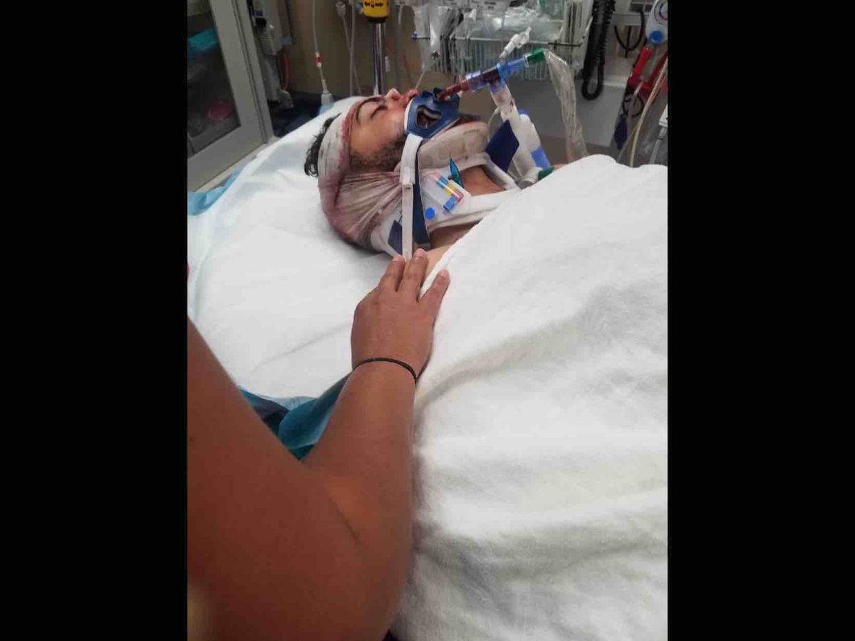 Hi my name is Lizette Valencia. On Thursday August 2, 2018, My nephew Eduardo Torres who is only 21, was riding his motorcycle and it was raining. He lost control and hit a fence causing him to be thrown off the bike hitting a concrete wall and landing in a lake. He managed to crawl out of the water all mangled and bleeding and called mom in a panic before he went unconscious and a witness picked up the phone and called an ambulance.