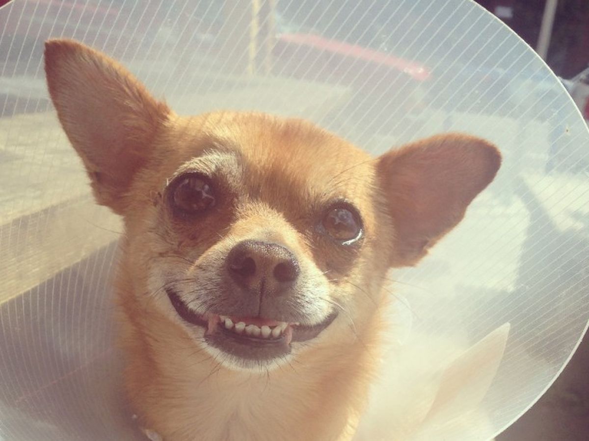Ponyo spreads joy to the world. She is a very sweet creature with an enormous patience for strangers, children, and the elderly. I look forward to taking her along with me for more animal adventures, with or without her Elizabethan Cone.