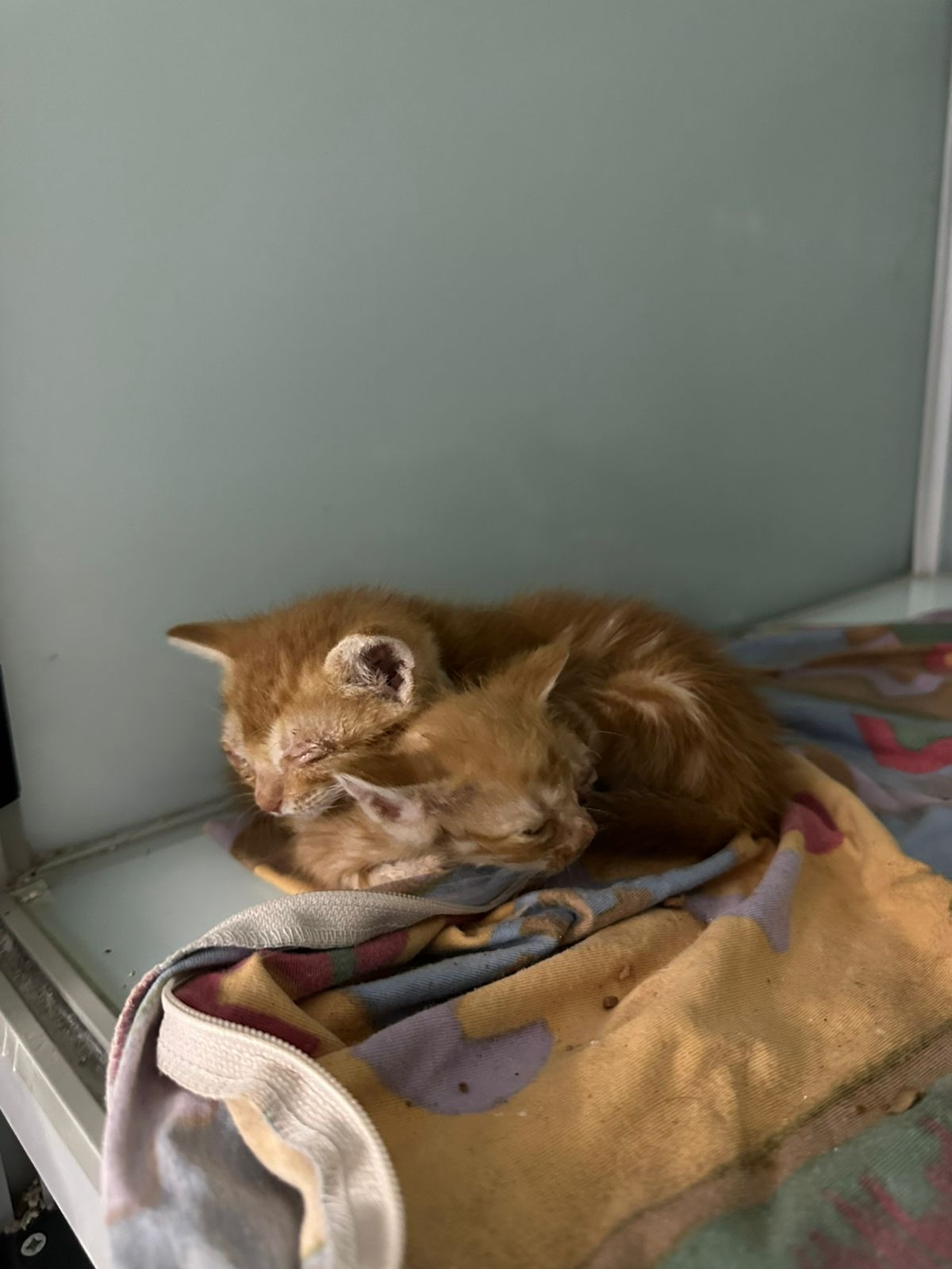 They're now with a vet who has said they have Coryza virus and around a 40% chance of survival. Three of the four need one of their eyes removed due to significant infection. The vet doesn't think they will survive the surgery at the moment. They've been cleaned up, given medicine and will be reassessed in 2-3 days.