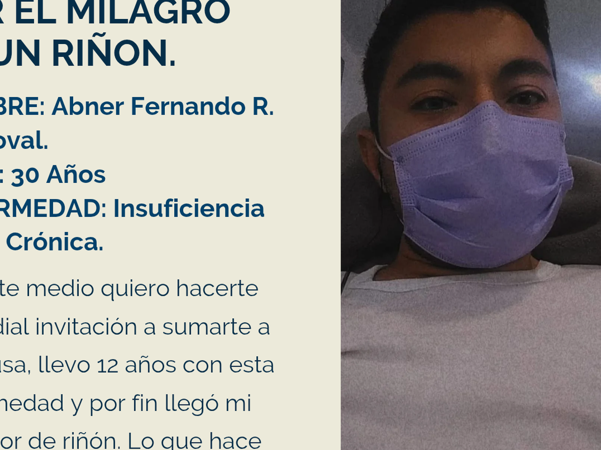 Tambien quisiera compartir que ya tengo pocas posibilidades de accesos vasculares que sirven para ponerme catéteres que es por donde me realizan mis hemodiálisis, por eso es importante y urgente realizarme un transplante de riñon, paso 3 días a la semana, durante 3 horas y media conectado a una maquina que es la que me mantiene con vida, pero a su vez me desgasta físicamente, si junto las horas que estoy en esa maquina durante todo el año, serian equivalentes a 21 días del año conectado a ella y creo eso no es justo vivir asi.