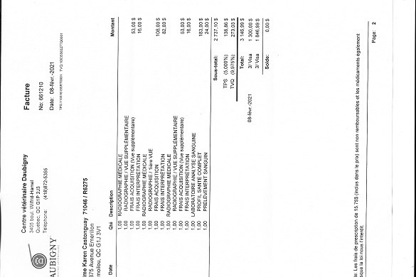 Normalement, j'ai un fond de prévoyance pour mes animaux, mais depuis la dernière année et demie on y a goûté question soins vétérinaires.  J’aimerais pouvoir repartir mon fond en allégeant le montant de ce dernier épisode santé animale.