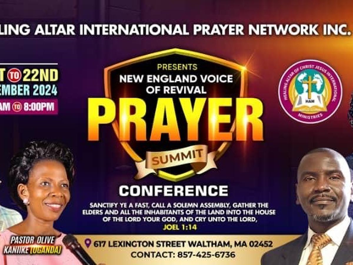 My Name is Pastor Alex Niwagaba. I'm the founder of Healing Altar Ministires International. We are organizing NEW ENGLAND VOICE OF REVIVAL PRAYER SUMMIT 2024. I kindly need your support to make it a success! These will Involve All church leaders, pastors, ministry leaders, prayer coordinators, church planters, youth pastors and their spouses across the states of New England region which include Massachusetts, Newhampshire, Main, Vermont Connecticut and Rhode Island are all invited to gather together in prayer, don’t miss. Bring all your members with you!