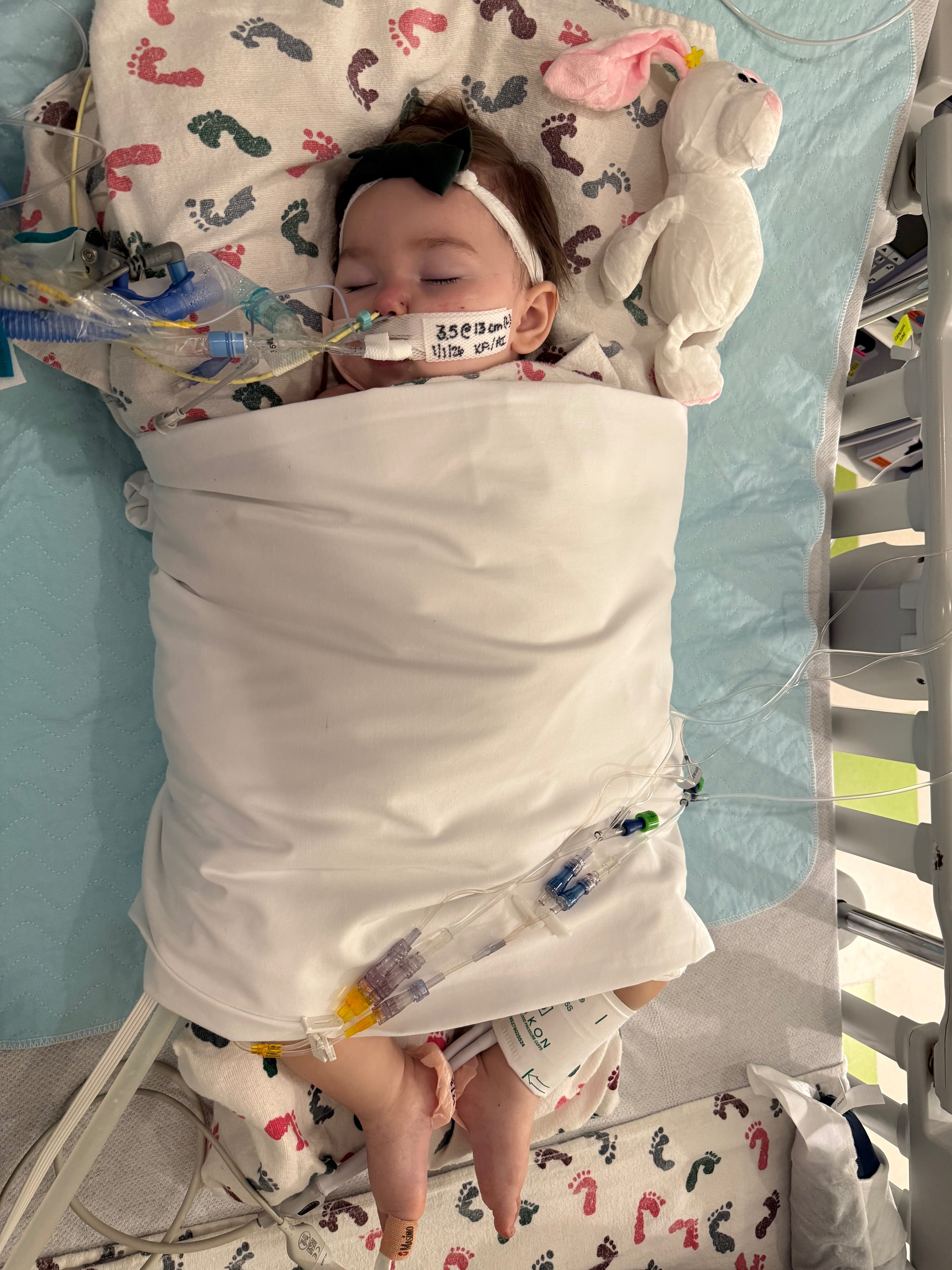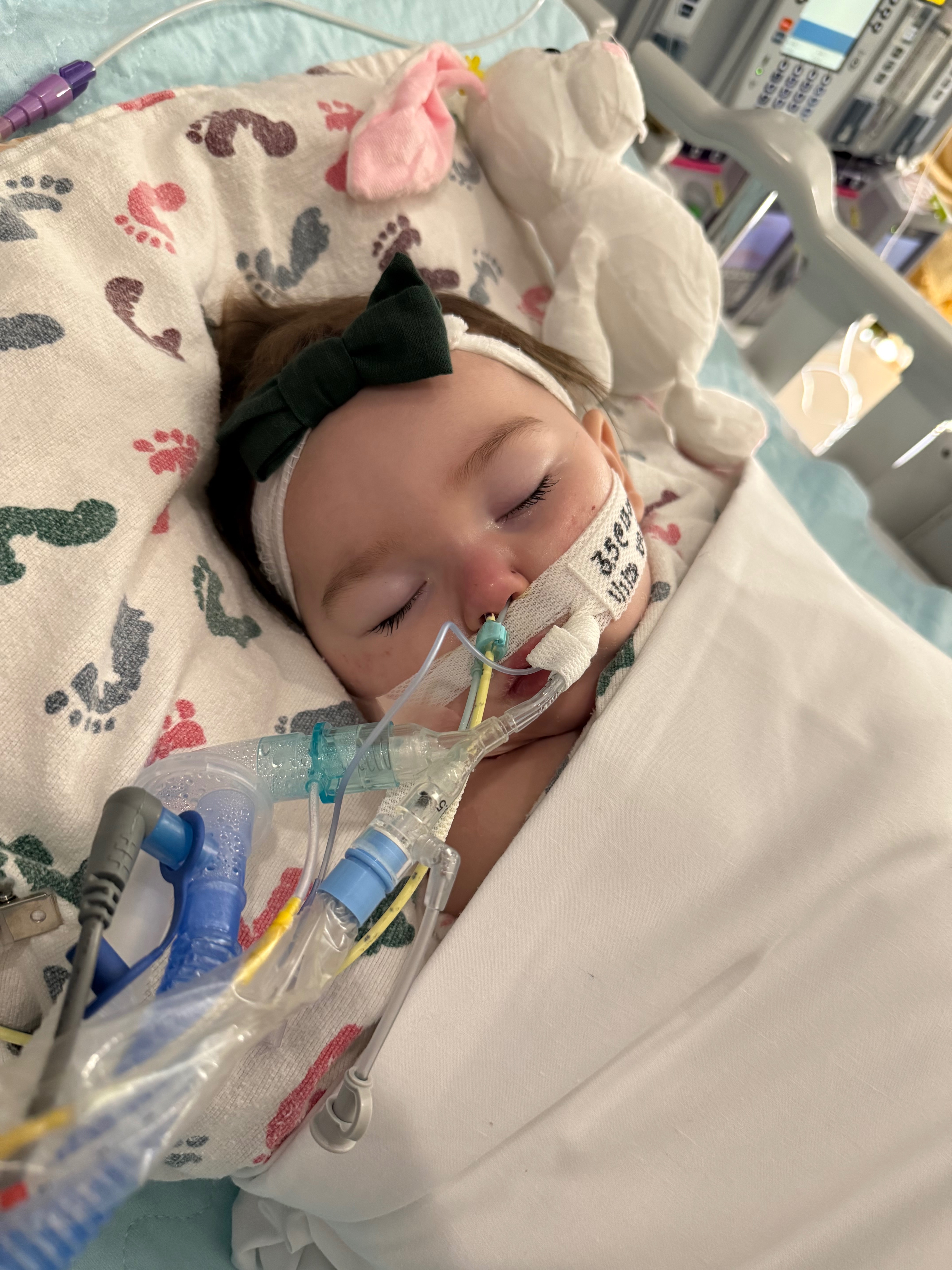 Our sweet 10-month-old niece is fighting for her life with severe respiratory failure caused by COVID, influenza A, and other viruses. She is on a ventilator, has a chest tube in place, and remains fully oxygen dependent.