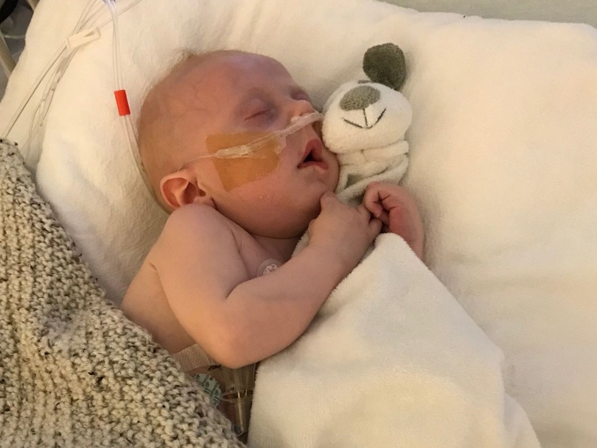 They had hoped to wait until he was a month old to have corrective surgery. After he was born, it became obvious they wouldn’t be able to wait due to obstructed veins. On his second day of life, he had his first open heart surgery. Approximately 2 weeks later, they discovered the opening where the surgeon had reattached the pulmonary veins to the heart needed to be widened. He underwent another open heart surgery. Afterwards he struggled to heal and recover; but after 8 long weeks in the hospital, he finally was sent home.