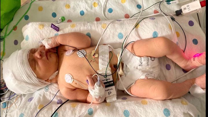 Shortly after birth, the doctors noticed some seizure activity and decided to do further testing. After a CT scan, it was determined that Presley had a stroke at some point and was suffering from a significant brain bleed.