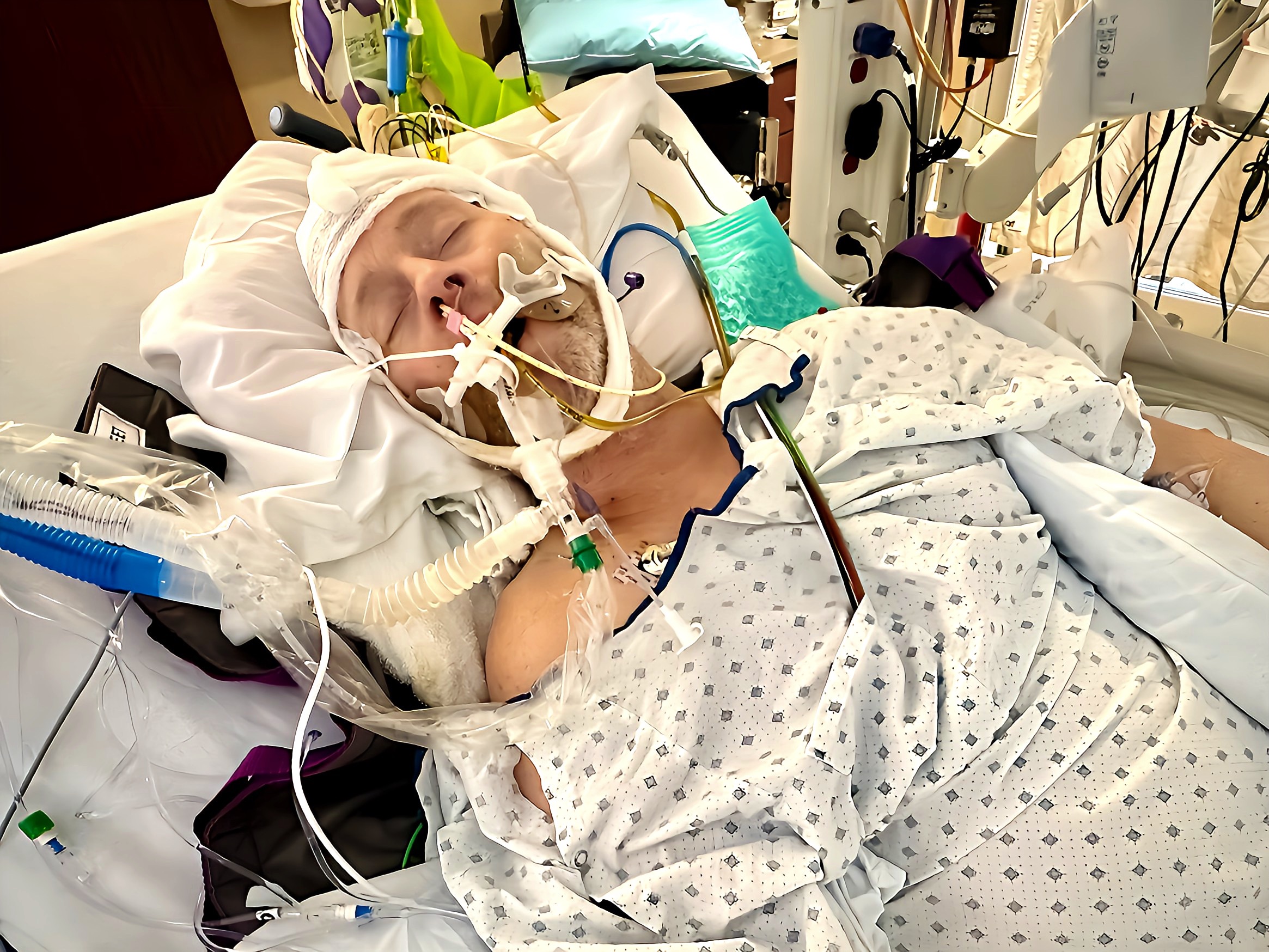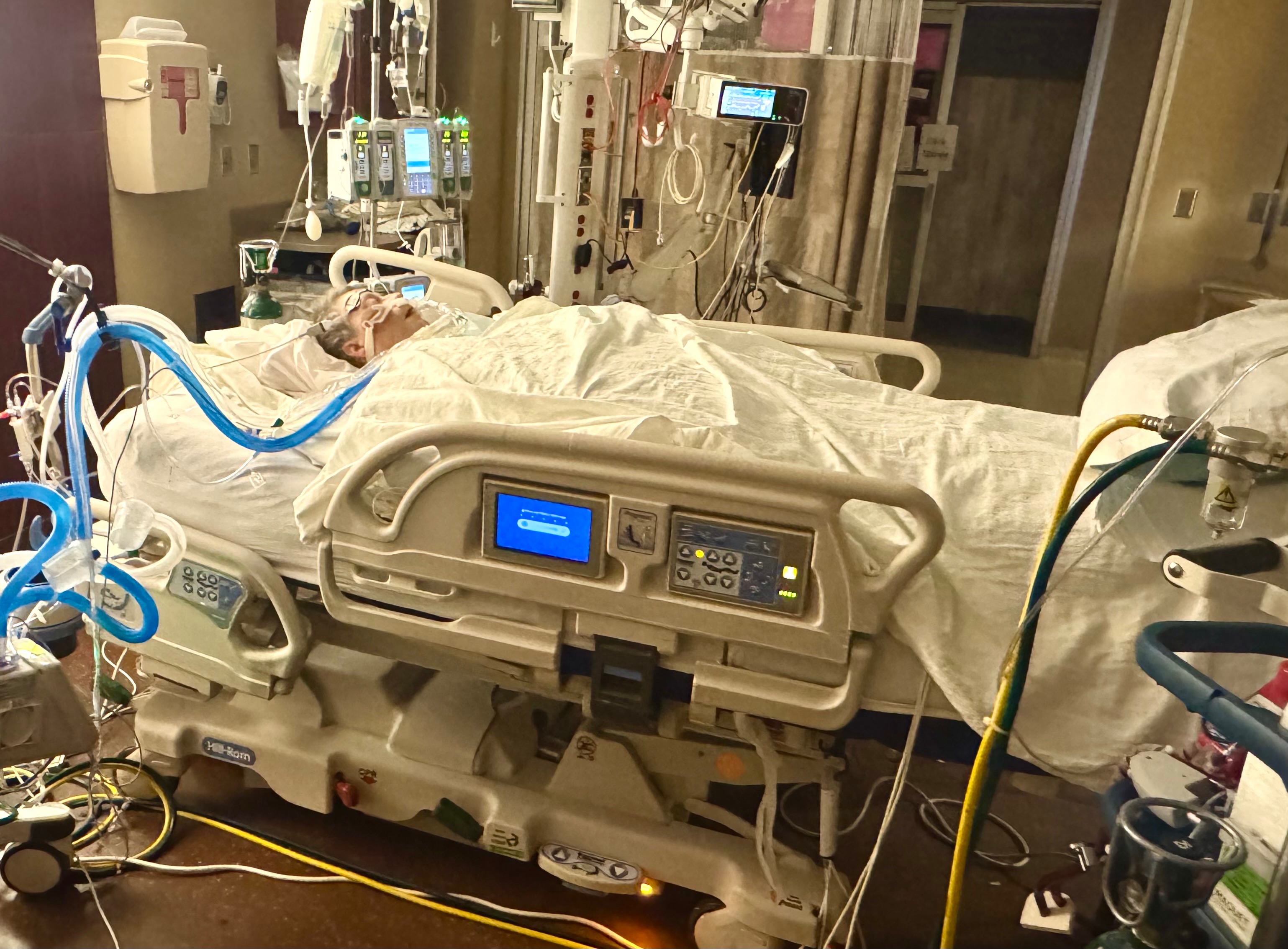 The Drs evaluated Tom and realized his heart was severely damaged to do surgery. His heart needs to rest and heal. So he was incubated, heavenly sedated and put on an ECMO. Methodist doesn’t specialize with ECMO’s so he was now transferred to Nebraska Medical. He’s even at NE Medical since 2/2 living off machines.