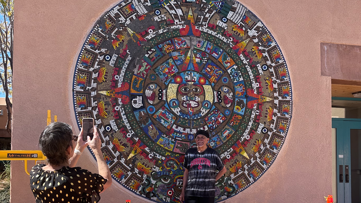 A lifetime of giving back through art...Sam isn't just an artist, he's an advocate, sculptor, musician, counselor, and mentor. When he first created this mosaic 20 years ago, he invited young artists from the community to help him, teaching them the craft and spirit behind public art. This has been a pattern throughout his life. Every mural Sam creates becomes a collaboration and a lesson, a way for him to give back and keep art alive for future generations. Today, Santa Fe is dotted with his murals, each one a colorful piece filled with cultural pride and history.